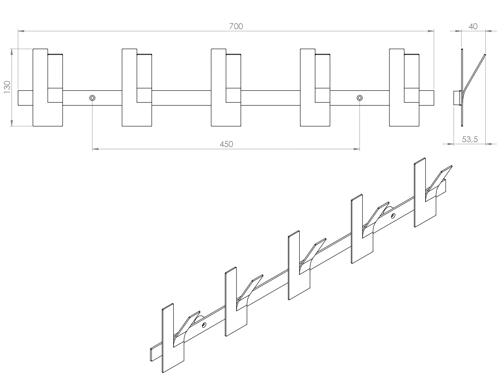 - Afmetingen (lengte x breedte x hoogte): 700 x 53 x 130 mm