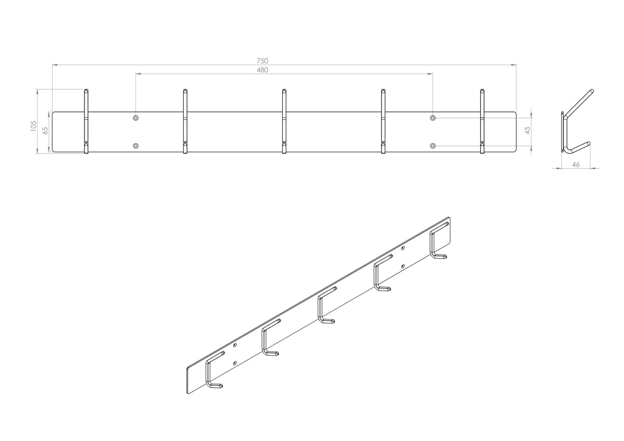 - Afmetingen (Lengte x Breedte x Hoogte): 750 x 53 x 104 mm