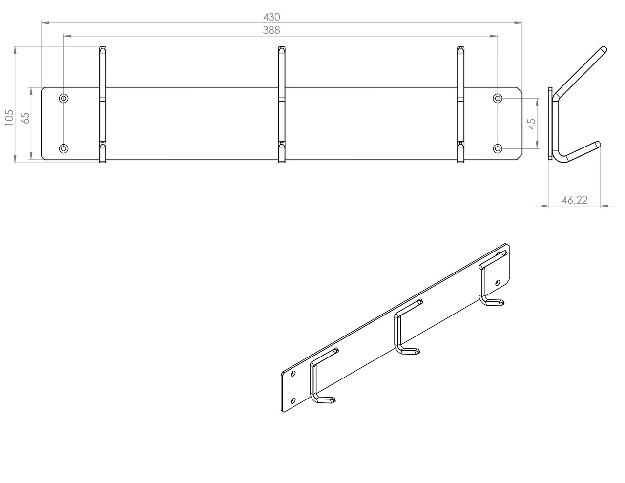 - Afmetingen (Lengte x Breedte x Hoogte): 430 x 53 x 104 mm