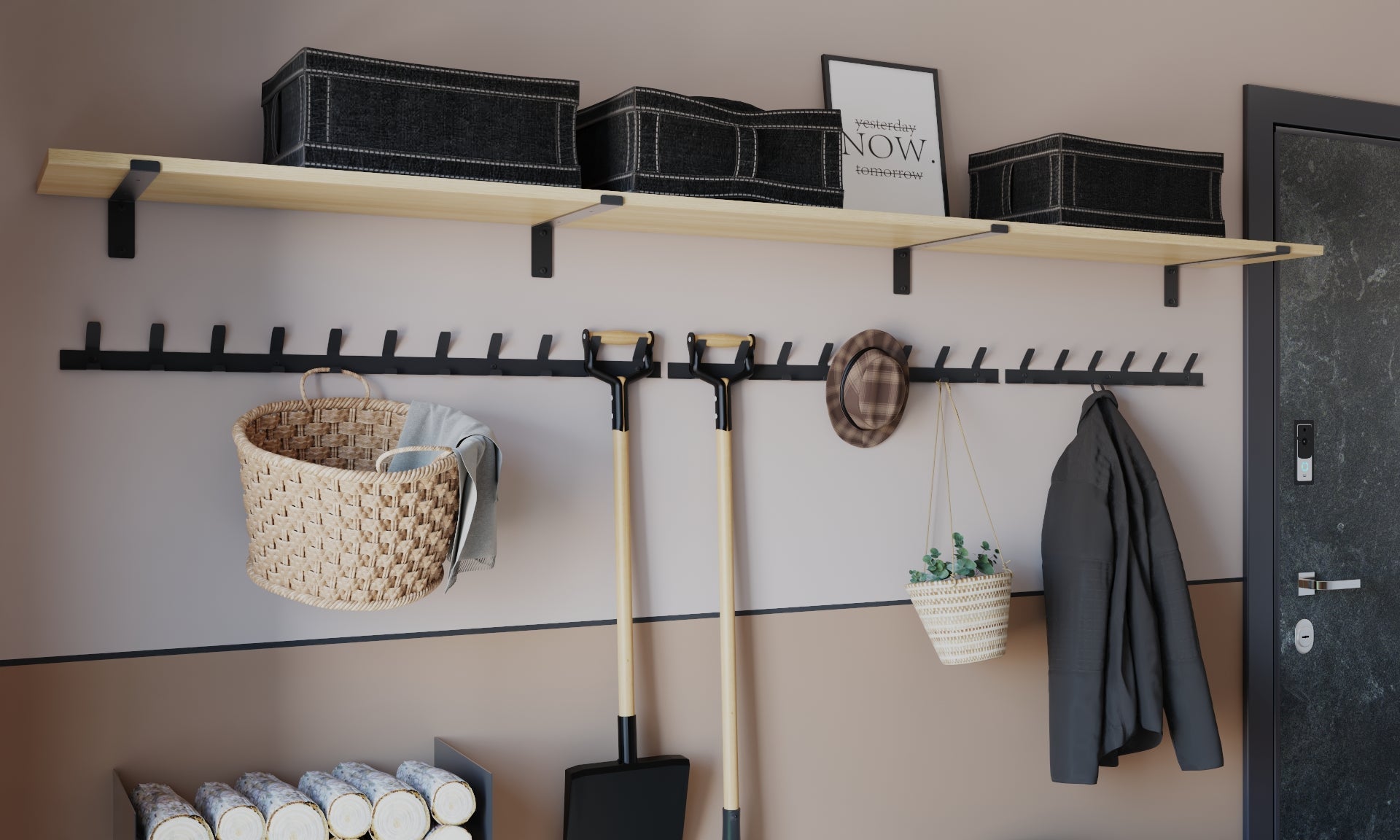 - Uitgerust met 22 ijzersterke kapstokhaken