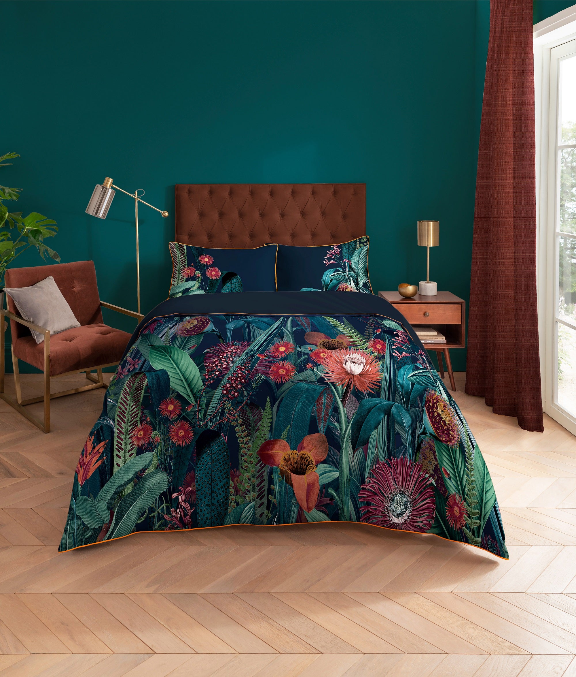 Het beddengoed kan perfect gecombineerd worden met het gelijknamige behang, en de verfsoorten Terrazzo, Jewel in the Crown en Fleur waardoor een samenhangende en harmonieuze look in je slaapkamer ontstaat. De Tigerlilly Midnight lits-jumeaux dekbedovertrekset is de perfecte aanvulling op elke slaapkamer.