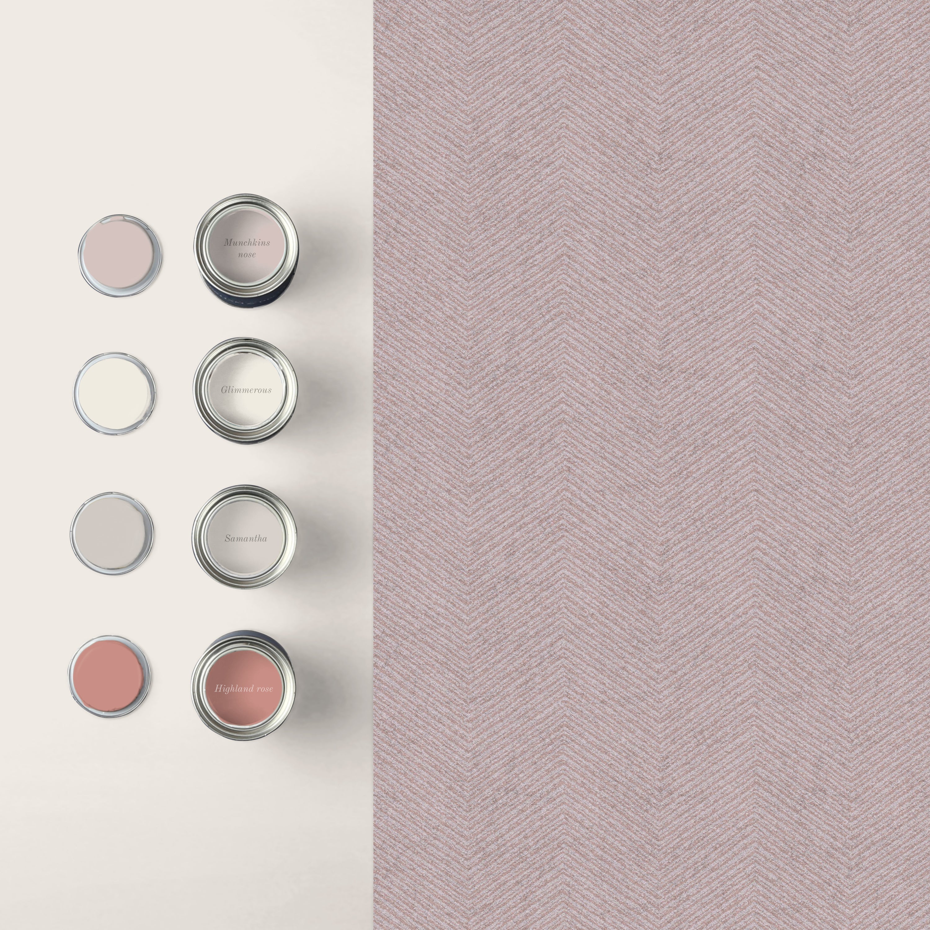 - Probeer ook onze bijpassende verfkleuren, voor de perfecte combinatie tussen verf en behang (zie afbeelding).