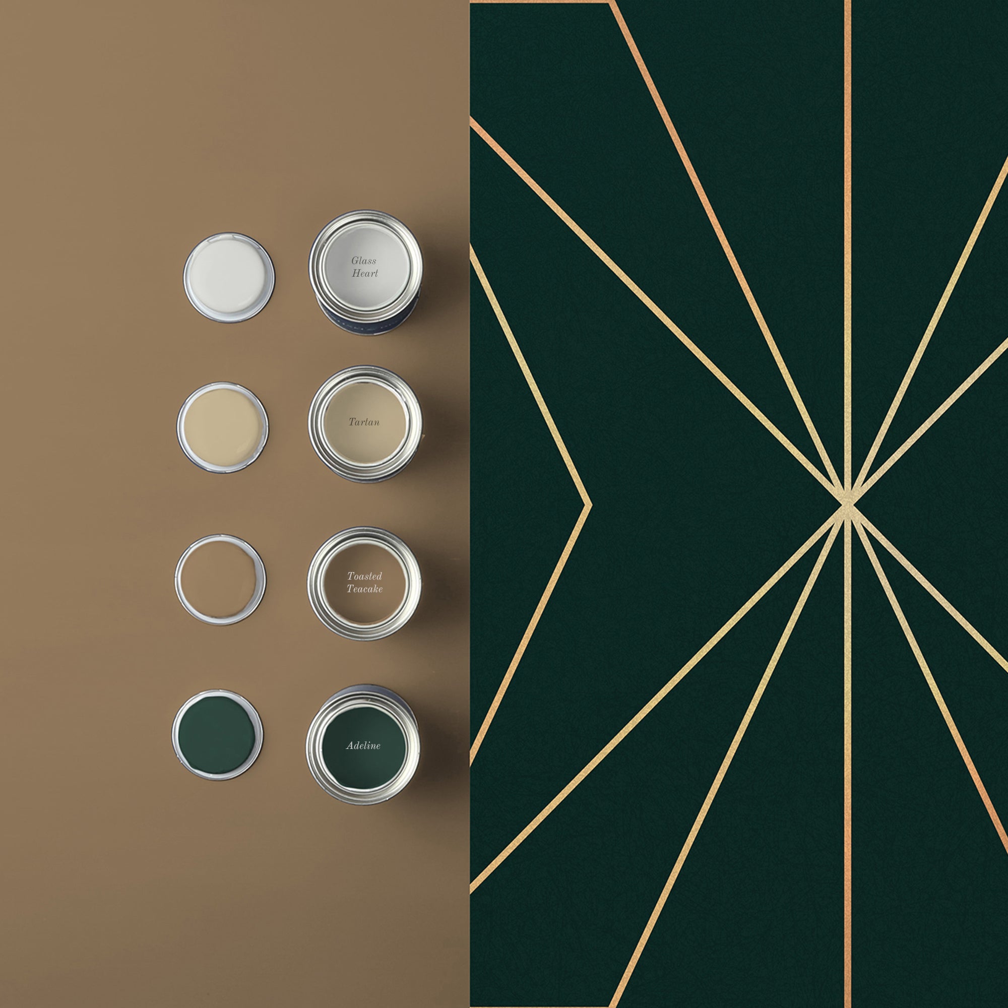 - Probeer ook onze bijpassende verfkleuren, voor de perfecte combinatie tussen verf en behang (zie afbeelding).