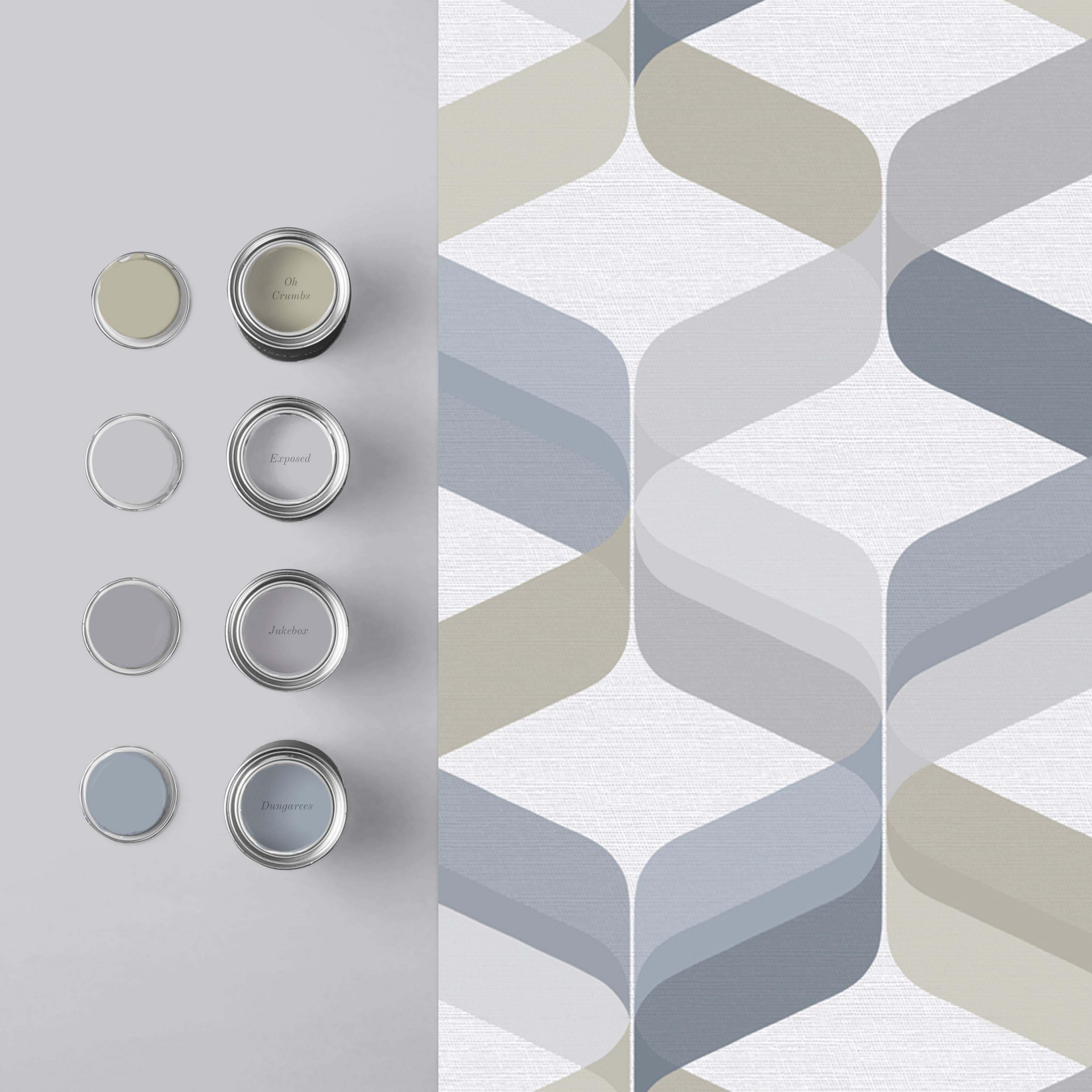 - Probeer ook onze bijpassende verfkleuren, voor de perfecte combinatie tussen verf en behang (zie afbeelding).