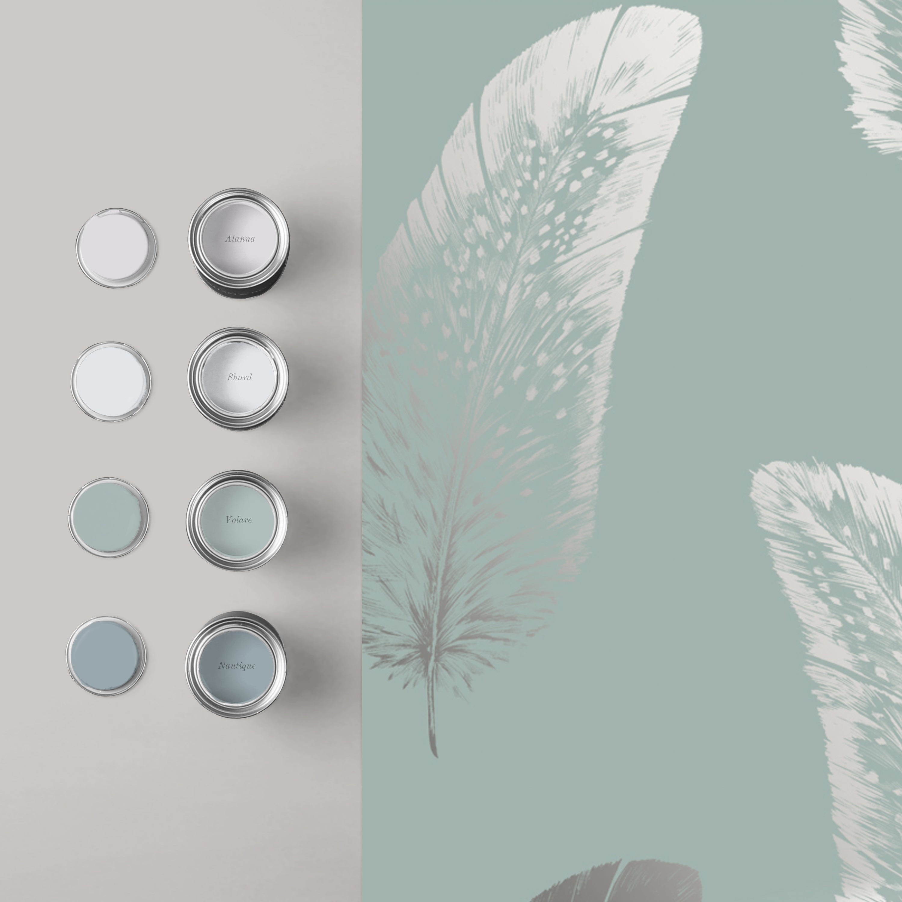 - Probeer ook onze bijpassende verfkleuren, voor de perfecte combinatie tussen verf en behang (zie afbeelding).