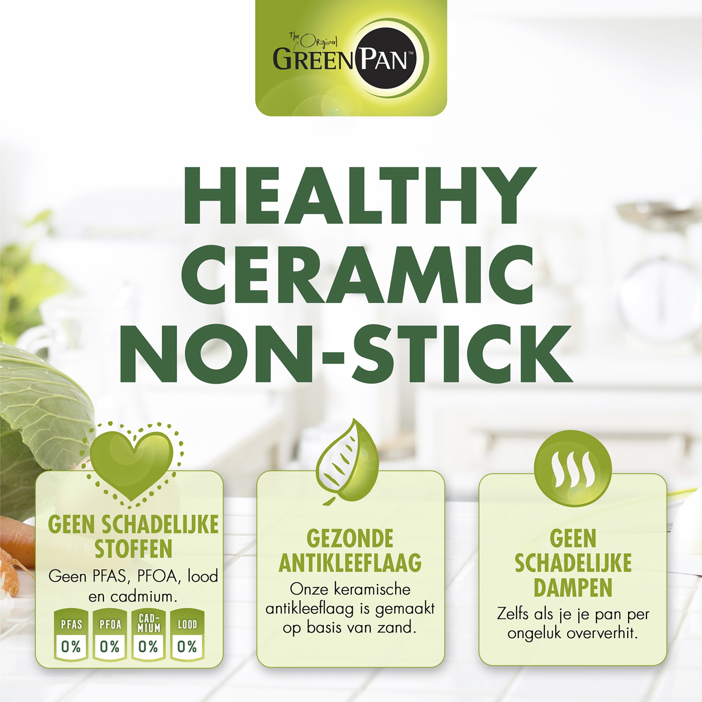 Enkele jaren geleden lanceerde GreenPan zijn eerste producten. De pannen van GreenPan zijn een veilig en gezond alternatief voor de pannen met een traditionele antiaanbaklaag. GreenPan maakt gebruik van het revolutionaire Thermolon. Dit is een unieke, keramische antiaanbaklaag die zonder de schadelijke stoffen PTFE en PFOA vervaardigd is waardoor hij veilig is voor zowel het milieu als voor de consument. Met een pan van dit merk kies je dus bewust én groen en duurzaam!