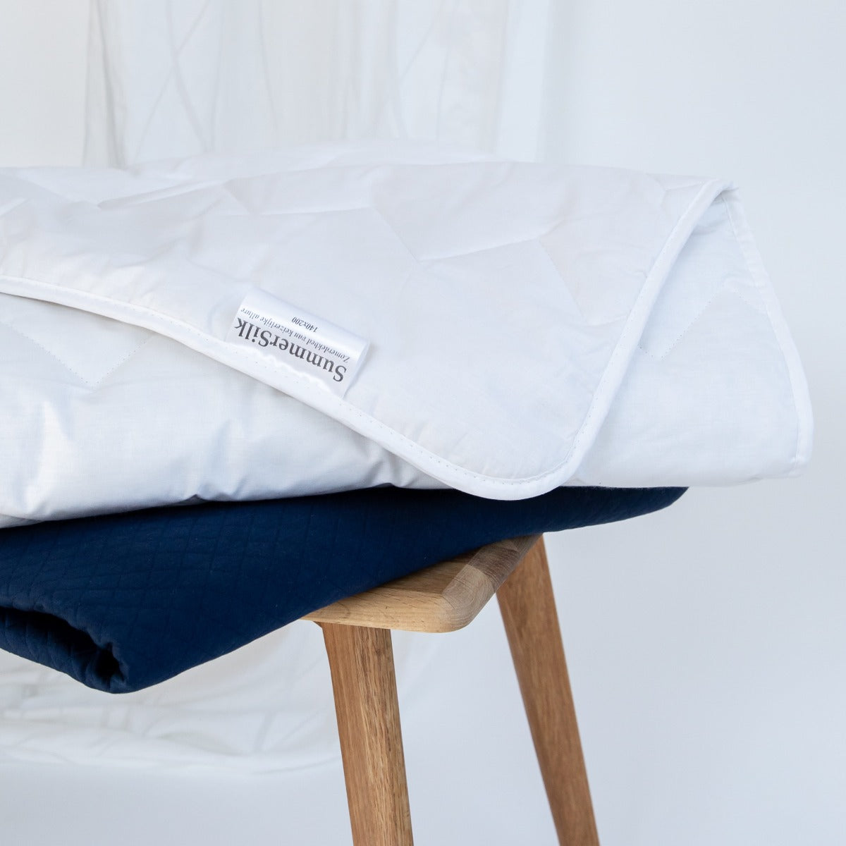 De speciaal ontwikkelde SummerSilk© zomerdekbedden flinterdun, heerlijk soepele en zó licht (slechts 200gram/m2!) dat u bijna niets op uw lichaam voelt. De ideale remedie tegen klamme, onrustige zomernachten.