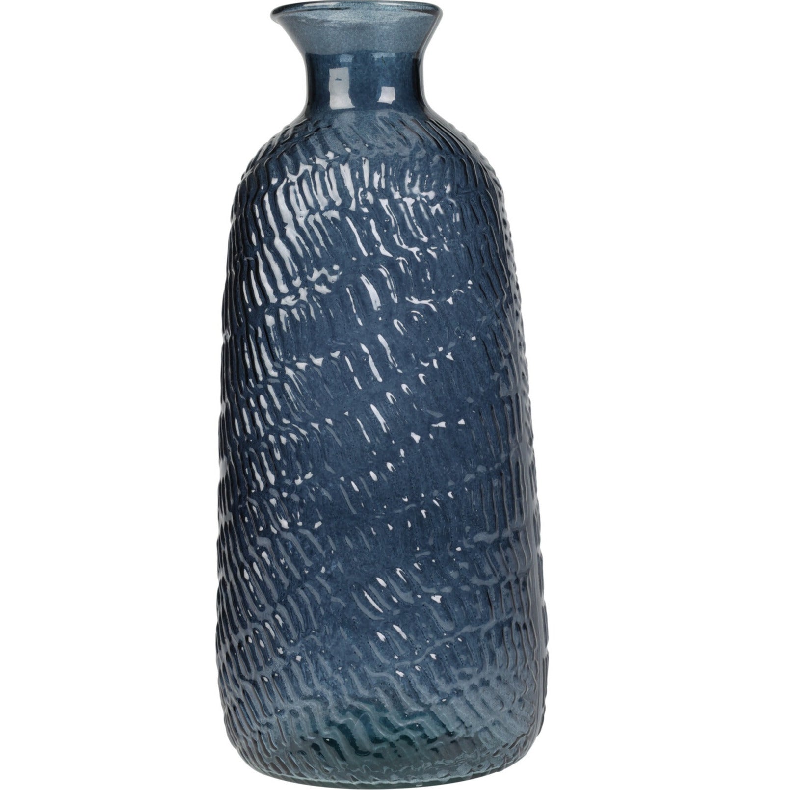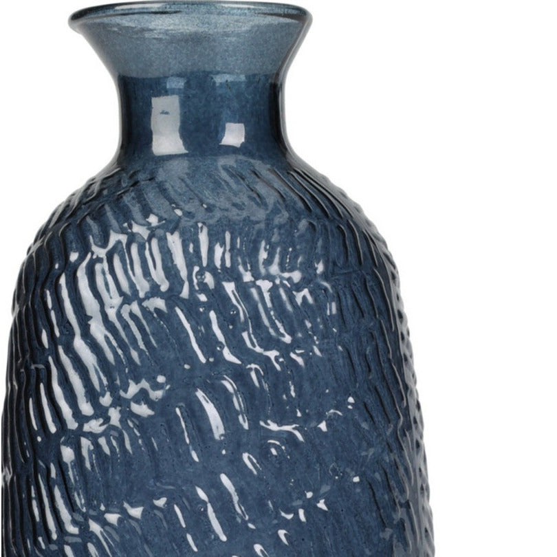 H&S Collection bloemenvaas Livorno gemaakt van gerecycled blauw transparant glas. Afmetingen: D13 x H31 cm. Vazen voor bloemen, deco takken en boeketten. Deze vaas heeft een mooi relief aan de buitenzijde. Voor binnen gebruik. Home deco woonaccessoires voor binnen.