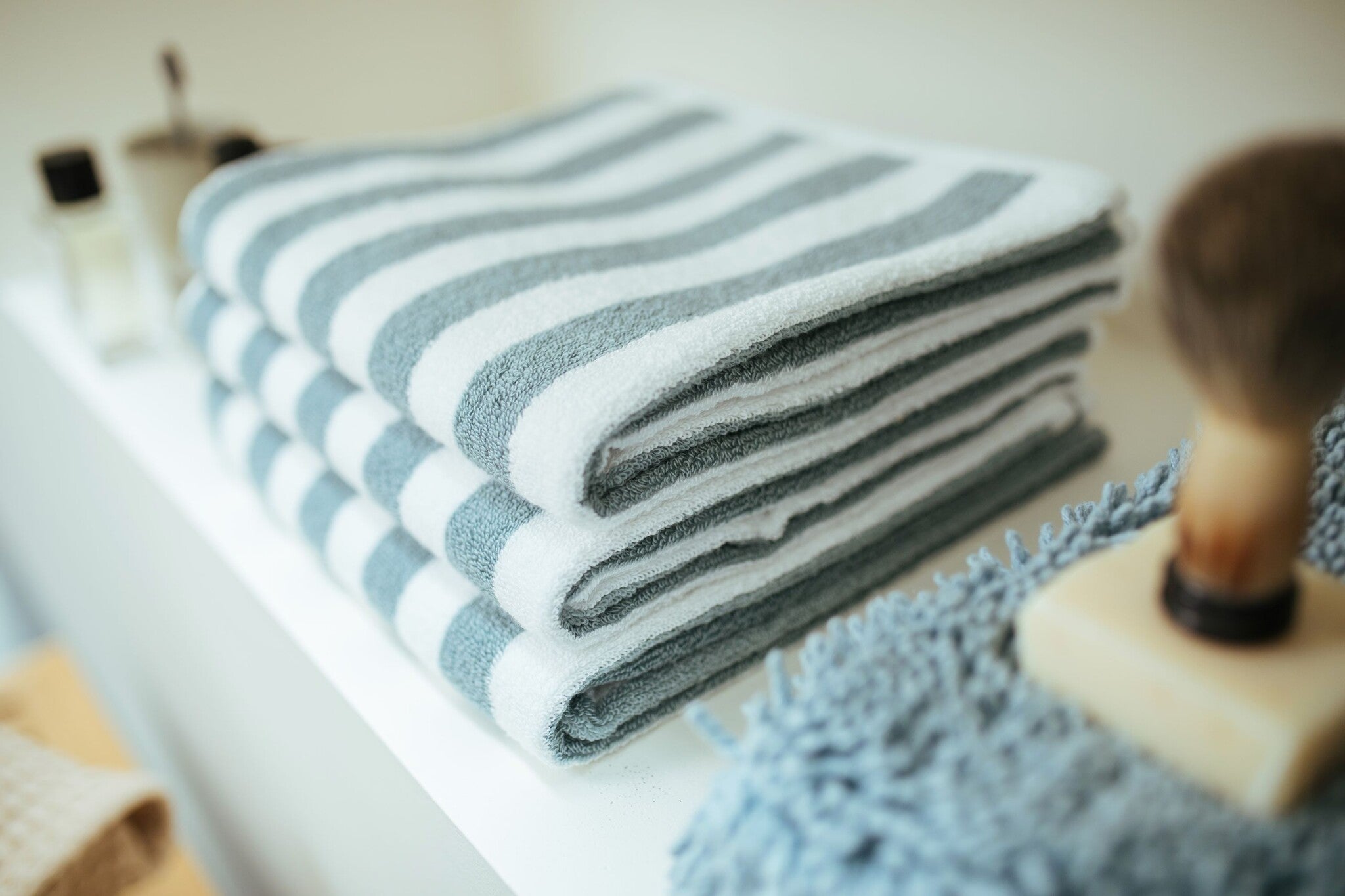Handdoek Verona Stripes Pearl Blue | 70 x 140 cm | Wit | Blauw