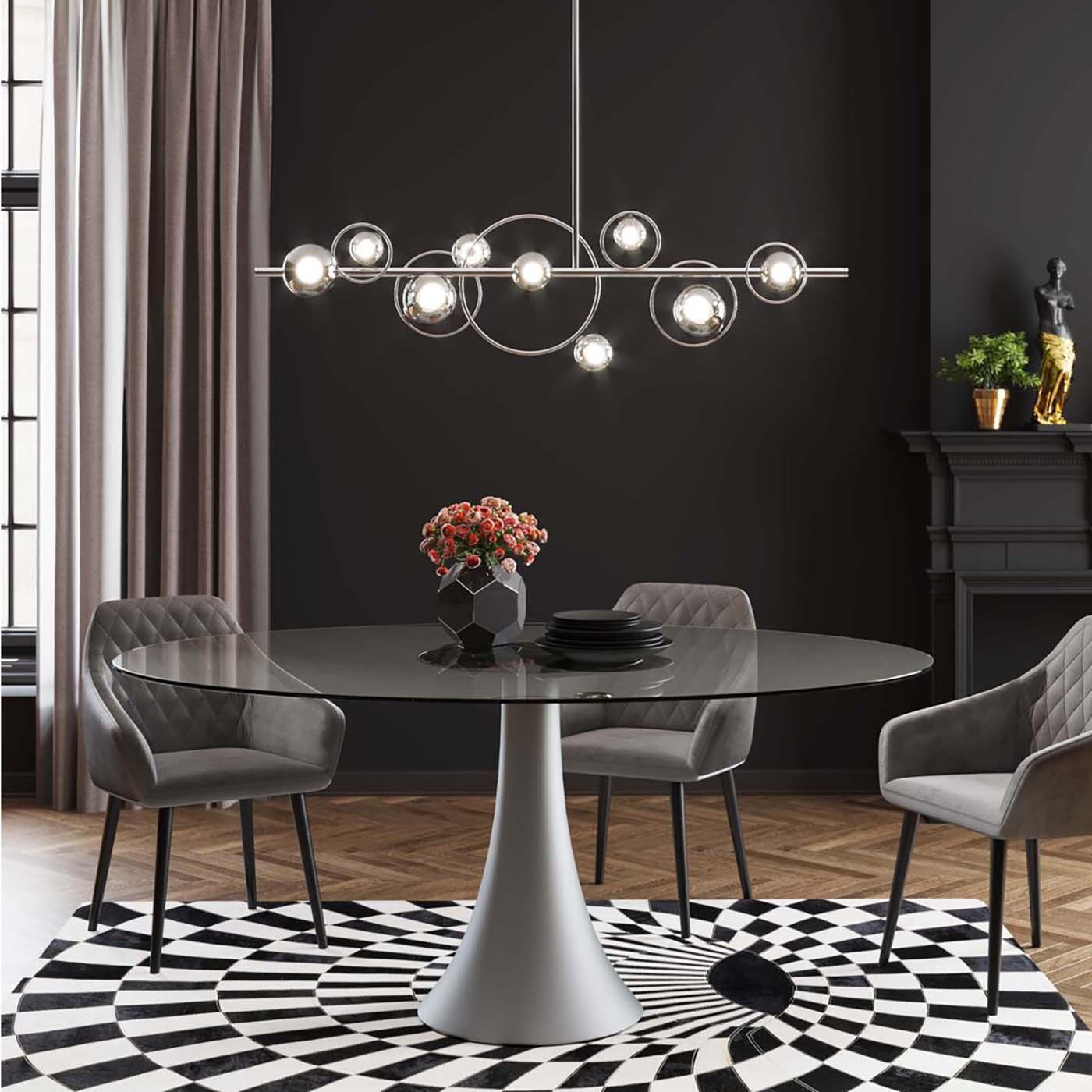 - Hanglamp Universe Chrome 110cm is een elegant en tijdloos meubelstuk dat perfect is voor een iconisch interieur.