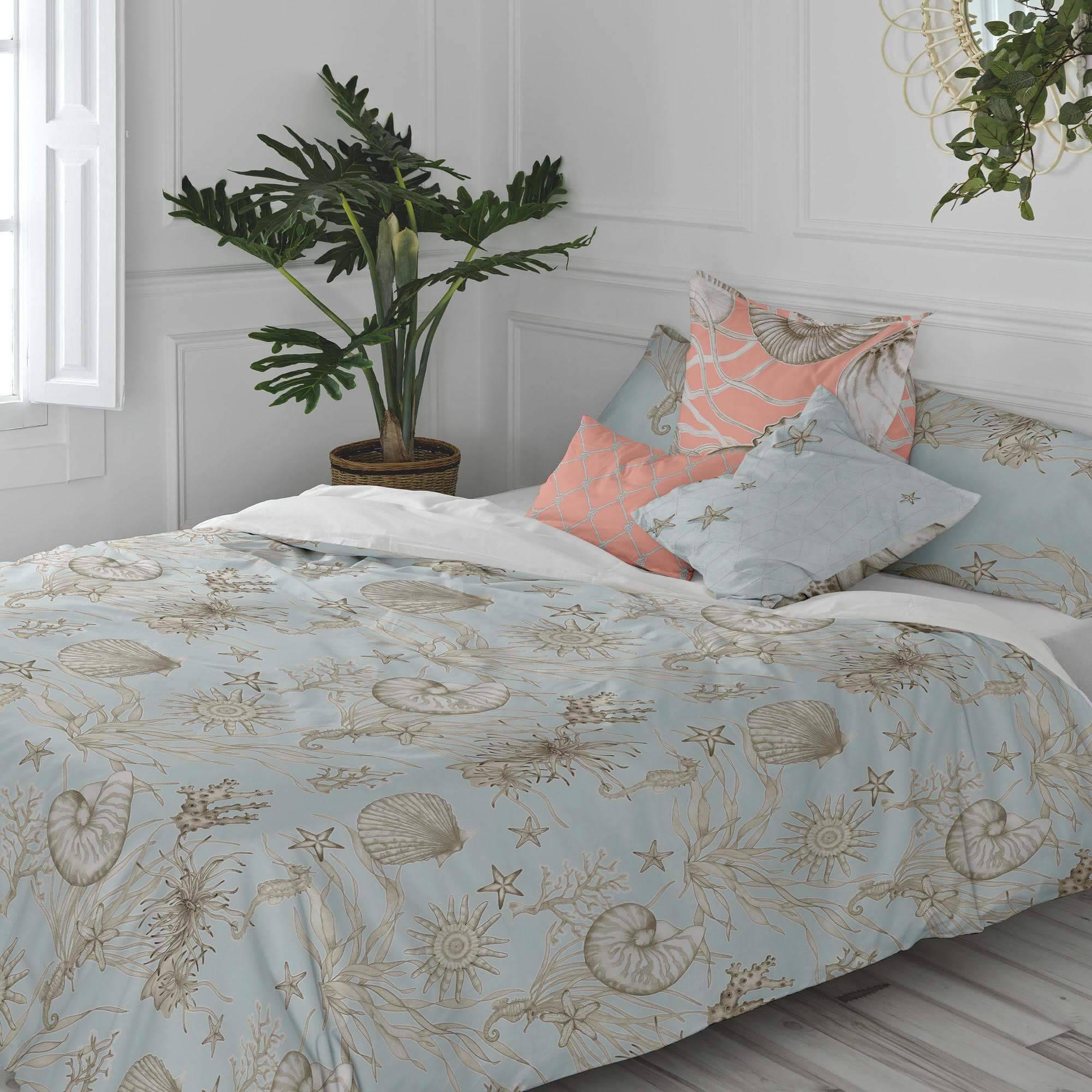 Het Coral Reef dekbedovertrek van Happyfriday brengt een gevoel van rust in elke kamer met zijn gedetailleerde illustraties van zeeleven tegen een pastelblauwe zee. Het gedetailleerde potloodschetsontwerp op dit 100% katoenen product is gemaakt door middel van high definition digitaal printen, met liefde vervaardigd in Spanje. Kussensloop en hoeslaken niet inbegrepen.