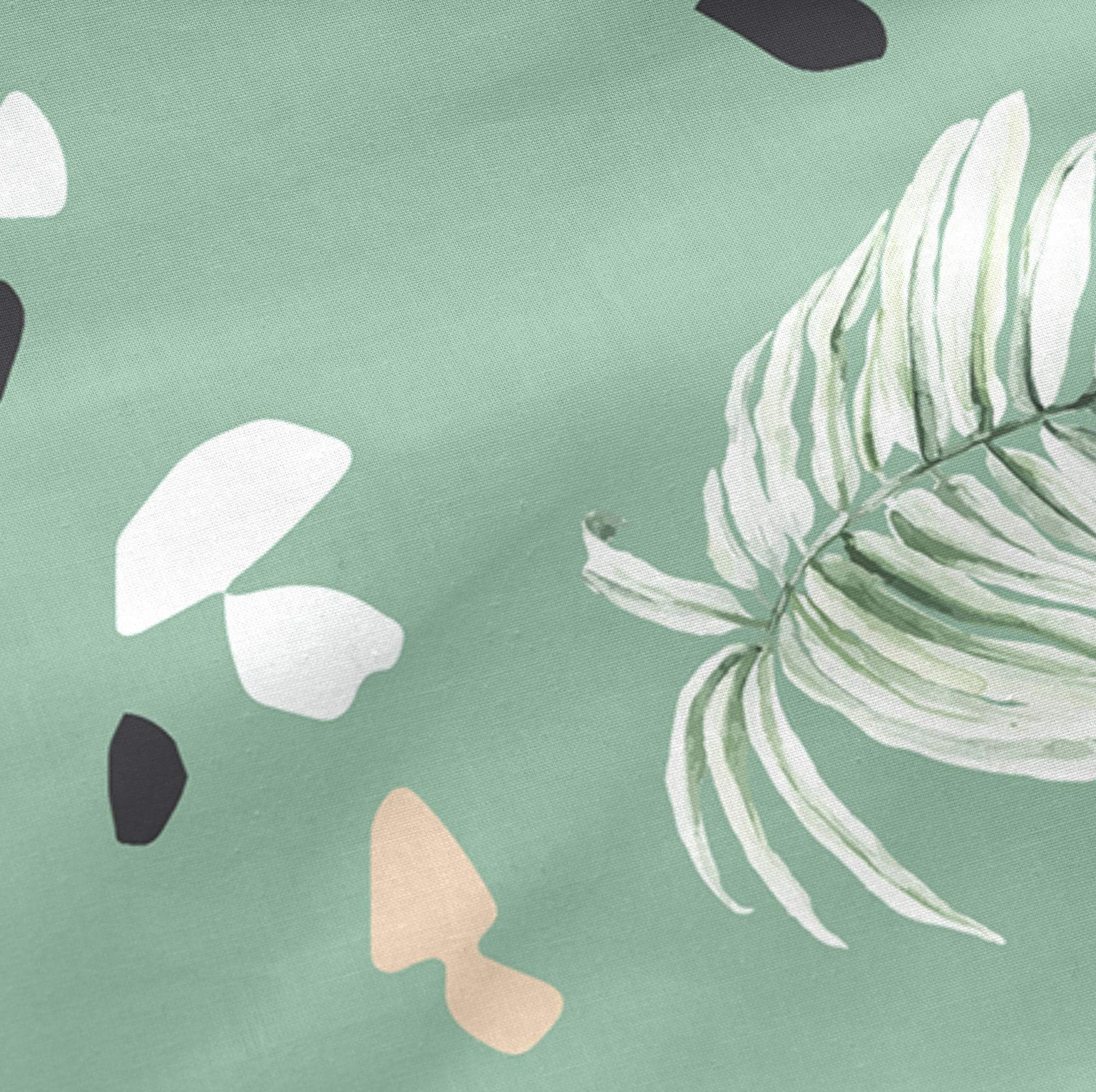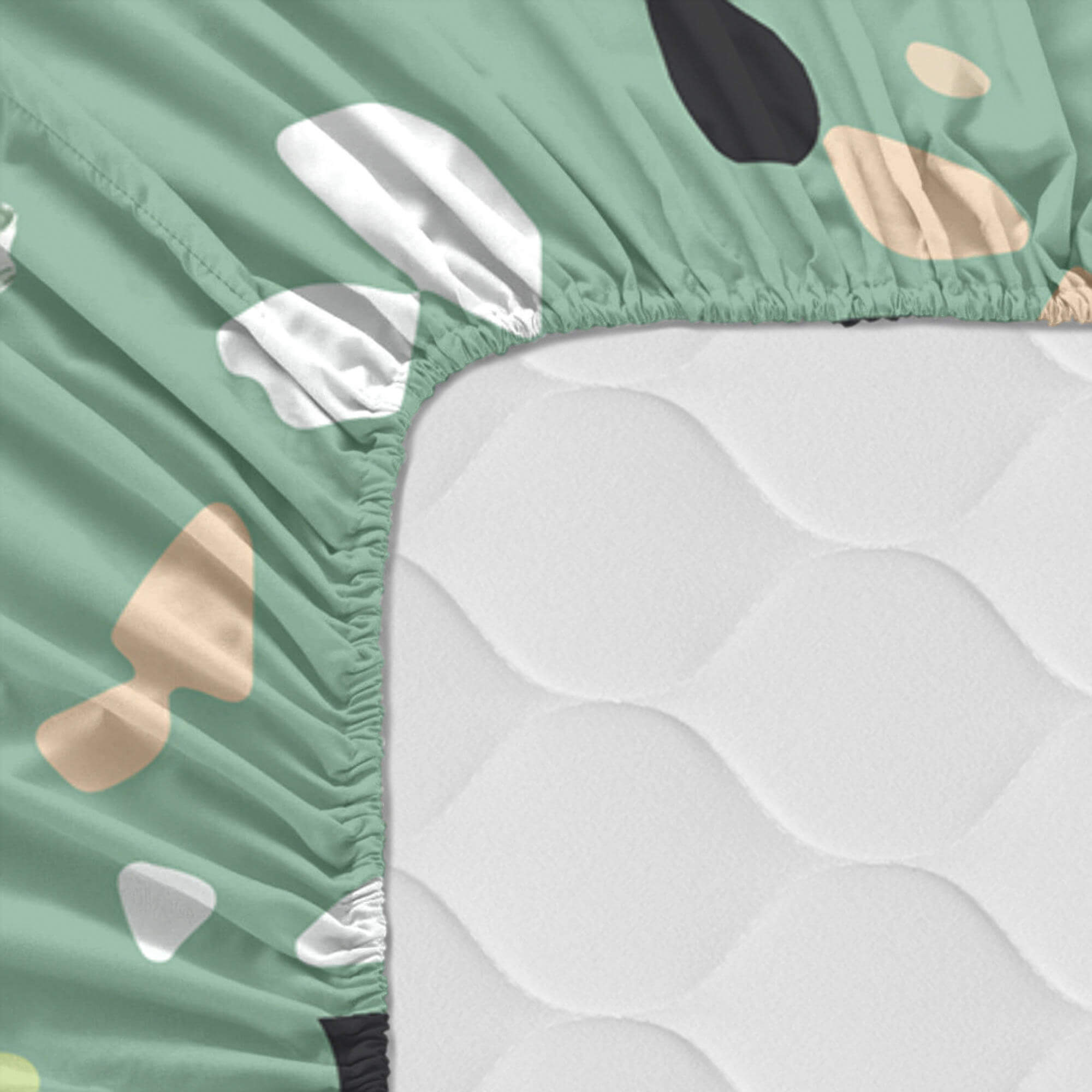 100% katoenen hoeslaken, 150 thread count. De hoeken zijn verstelbaar met elastiek.