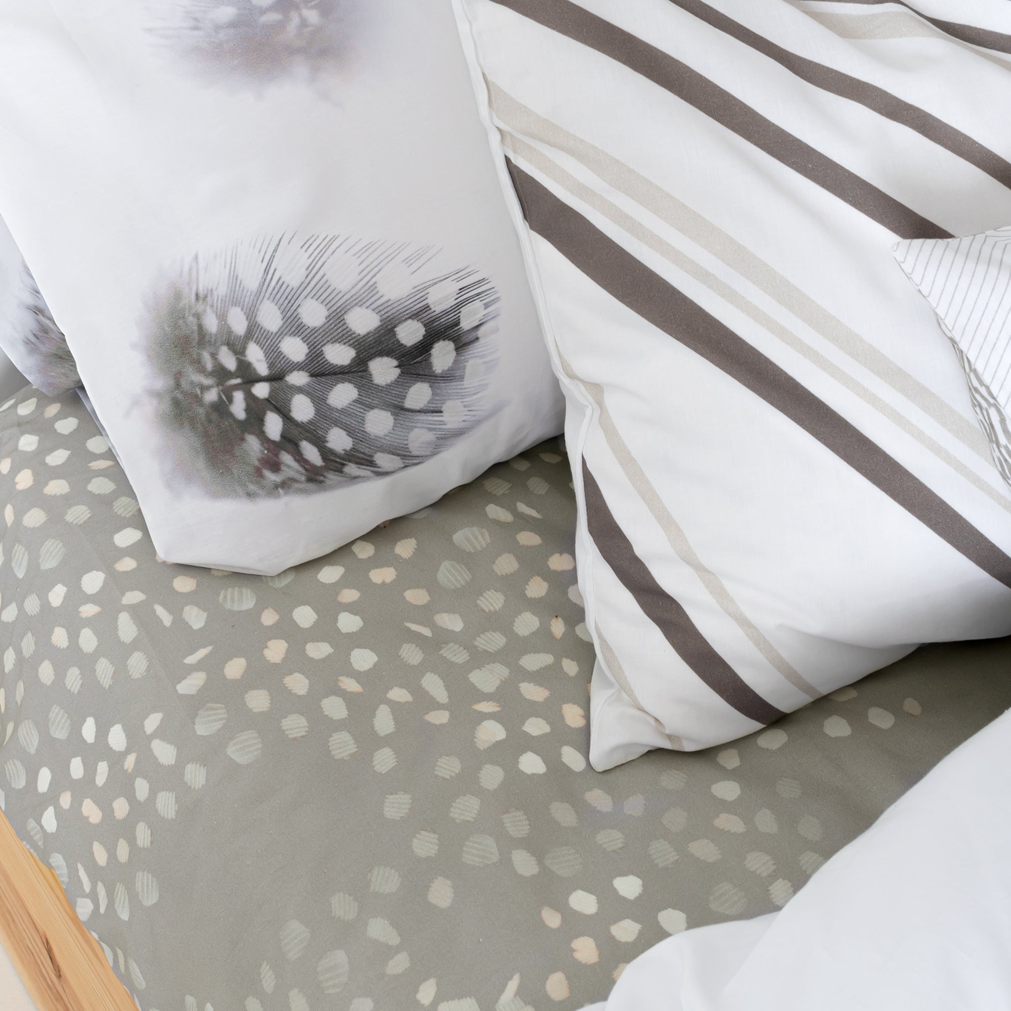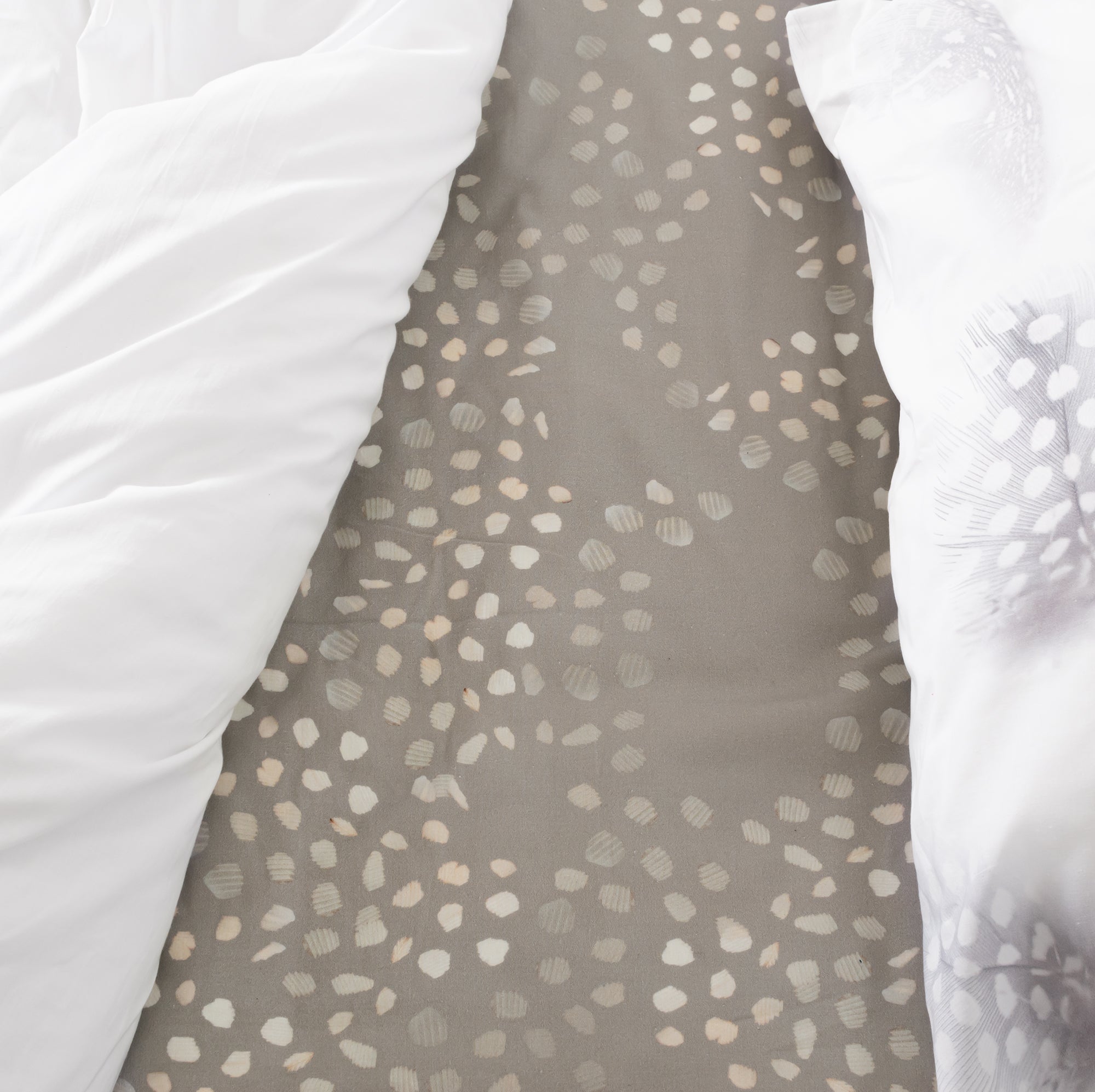 100% katoenen hoeslaken, 150 thread count. De hoeken zijn verstelbaar met elastiek.