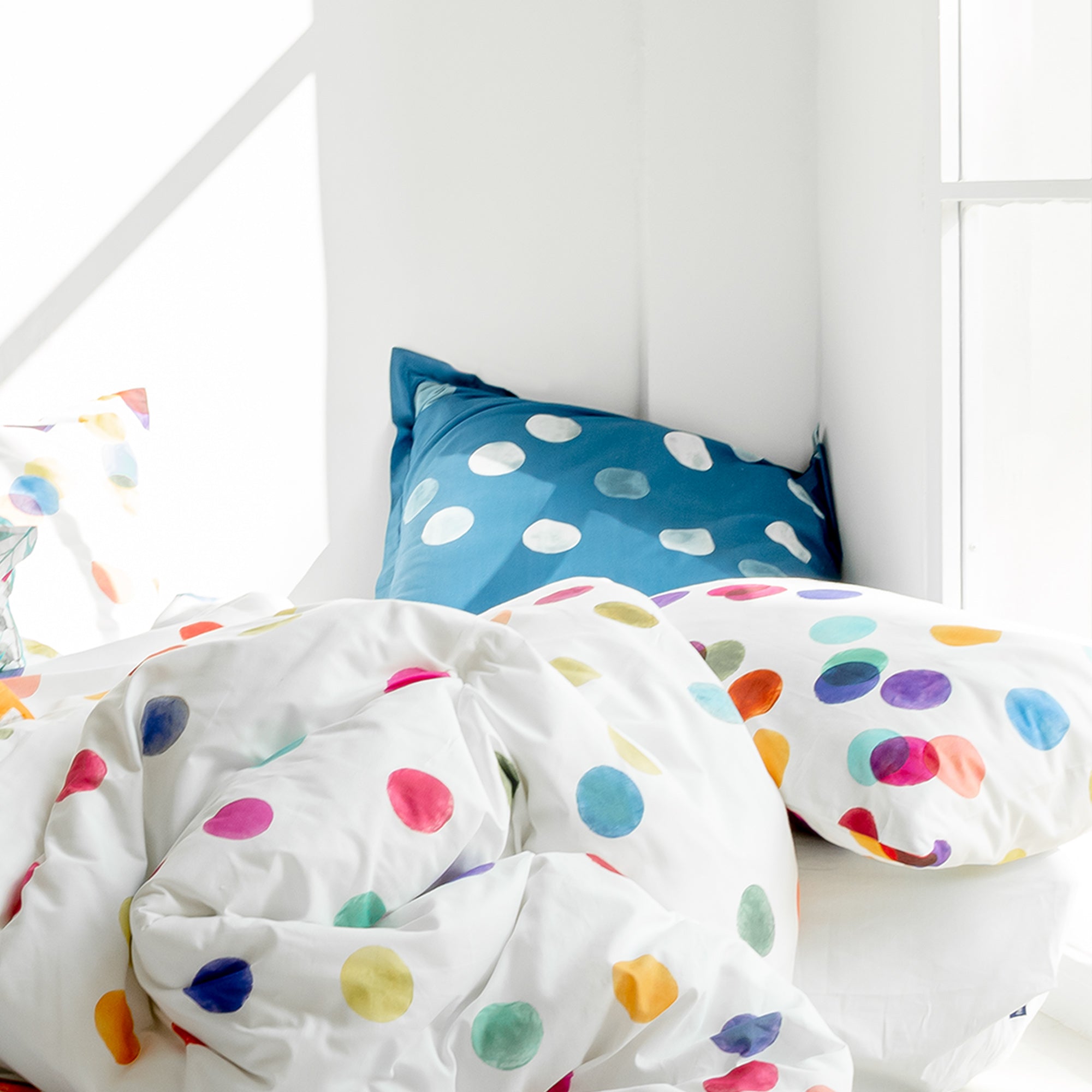 Geef je bed wat sprankeling met de Confetti kussenhoes van Happyfriday met zilverblauwe stippen op een diep marineblauwe achtergrond. Deze zachte kussenhoes van 150 thread count 100% katoen voelt heerlijk zacht aan en is makkelijk te combineren met andere producten uit dezelfde collectie. De vullingen zijn niet inbegrepen.