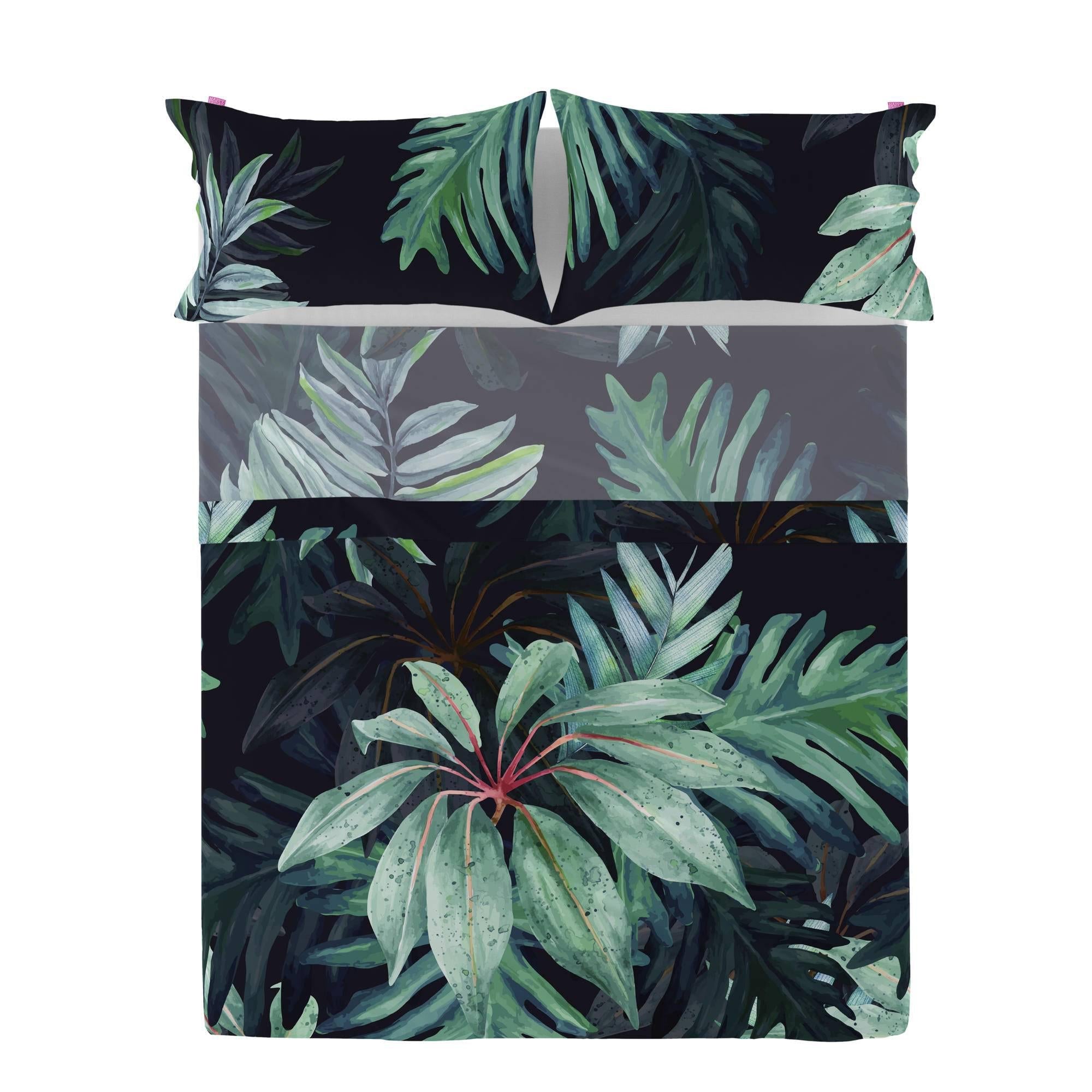 Het Ebony-hoeslaken uit de Happyfriday-collectie brengt je naar een prachtige tropische jungle met zijn weelderige oversized aquarelbladontwerp. Gemaakt in Spanje van 100% 150 thread count katoen en digitaal gedrukt in high definition. Dit laken is verkrijgbaar in verschillende maten en kan gecombineerd worden met andere producten in hetzelfde ontwerp. Kussensloop en hoeslaken niet inbegrepen.