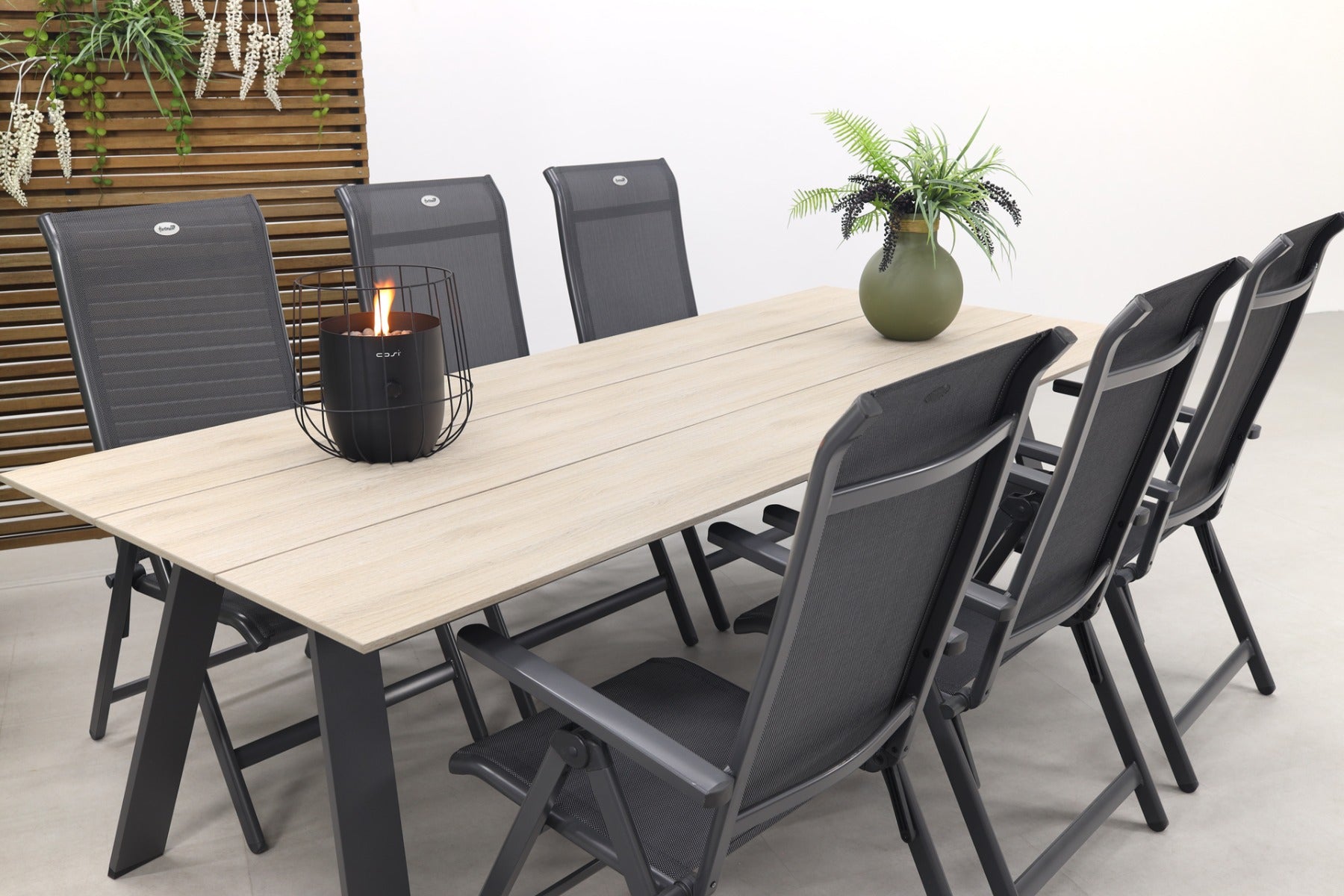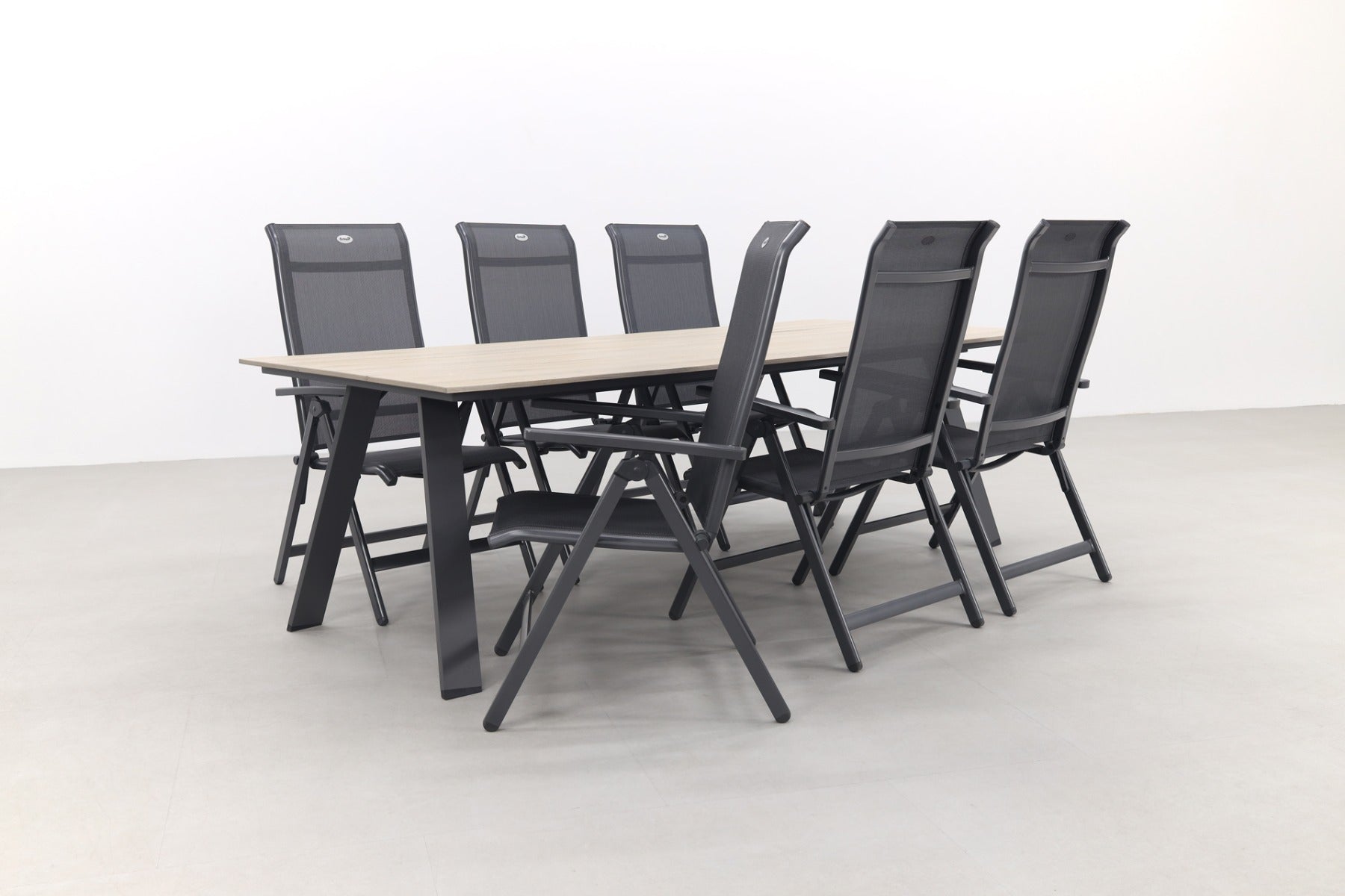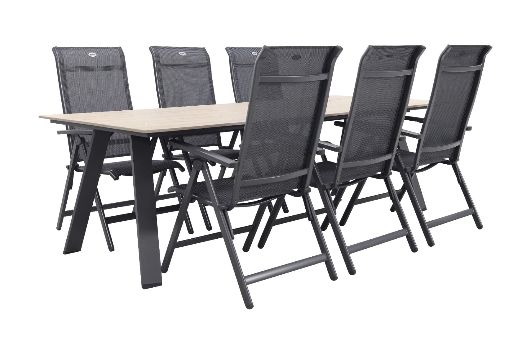 6x tuinstoel Hartman Milaan - Verstelbaar 1x tuintafel Garden Impressions Nevada 240 x 100 cm.