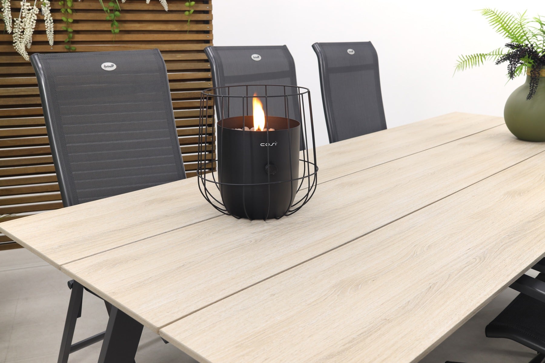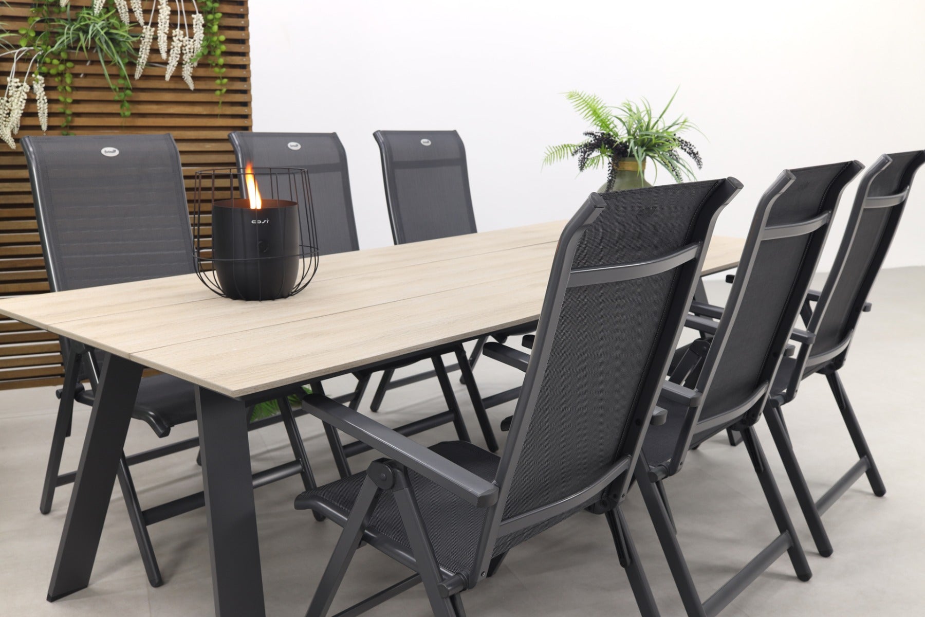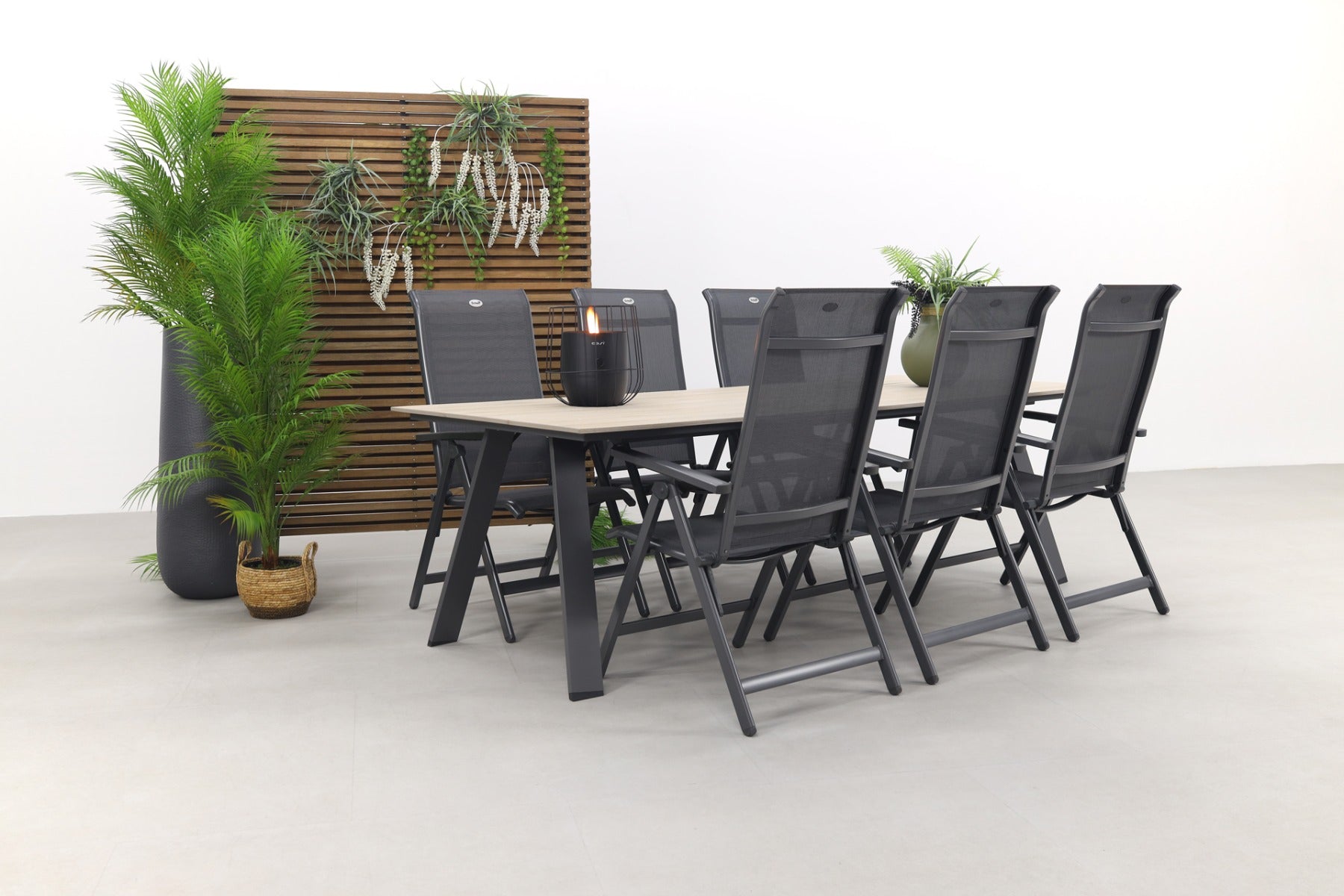 6x tuinstoel Hartman Milaan - Verstelbaar 1x tuintafel Garden Impressions Nevada 240 x 100 cm.
