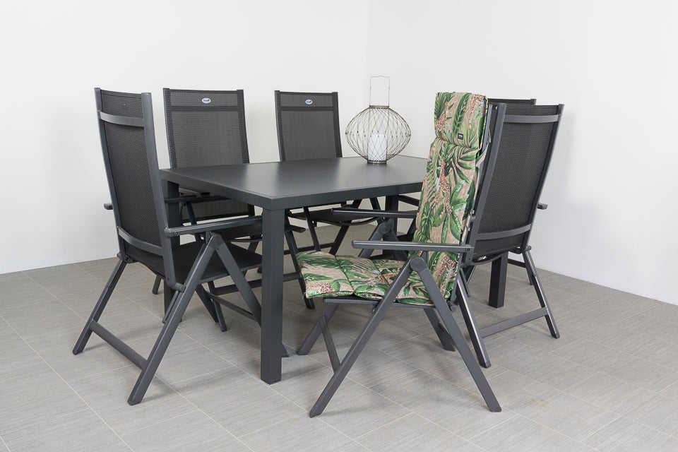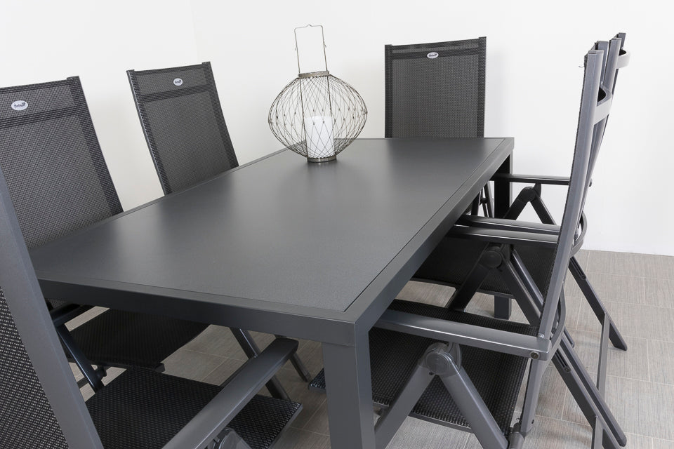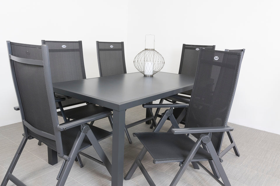 6x Hartman Napoli verstelbare tuinstoel 1x Alma tuintafel antraciet - 160 x 90 cm.
