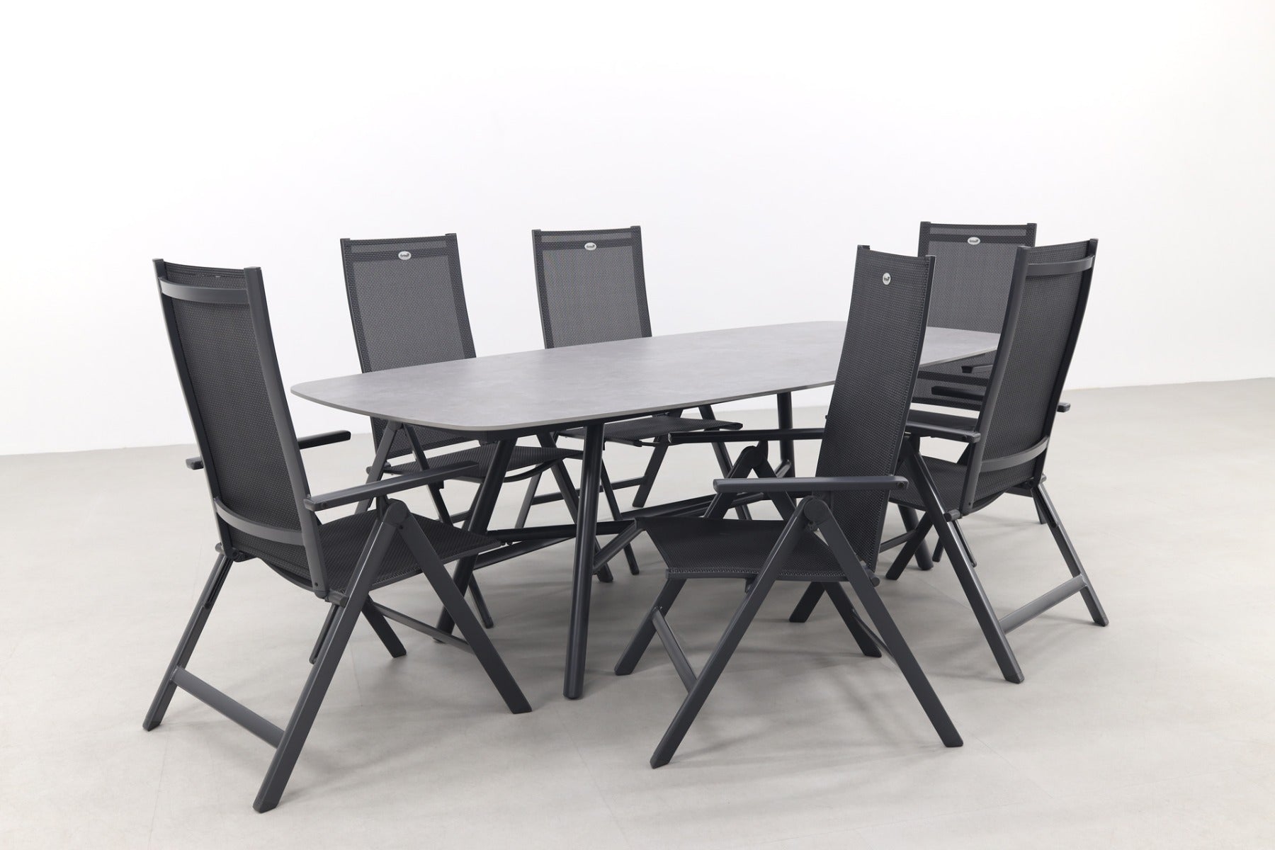 6x Hartman Napoli verstelbare tuinstoel 1x Hartman Benevento Deens ovale tuintafel