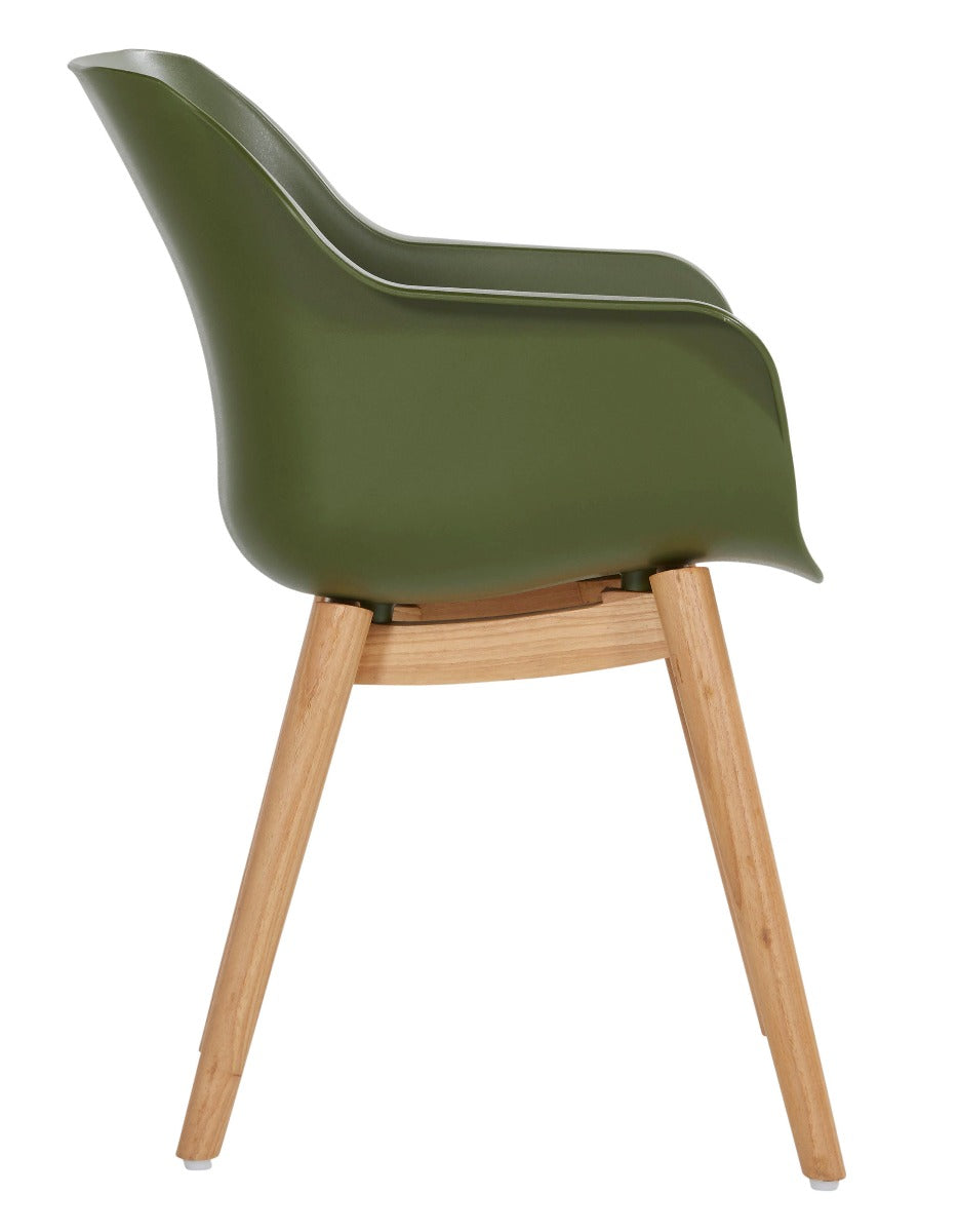 De moderne en tijdloze Sophie Teak armchair is uitgevoerd met een massief teakhouten 4-poots onderstel en een zitkuip van een hoogwaardige kwaliteit kunststof