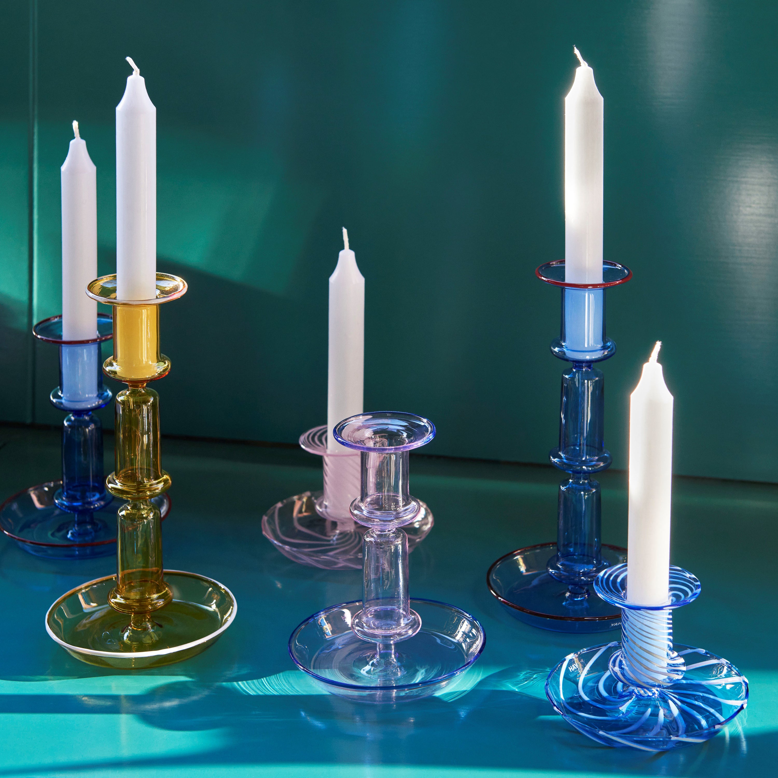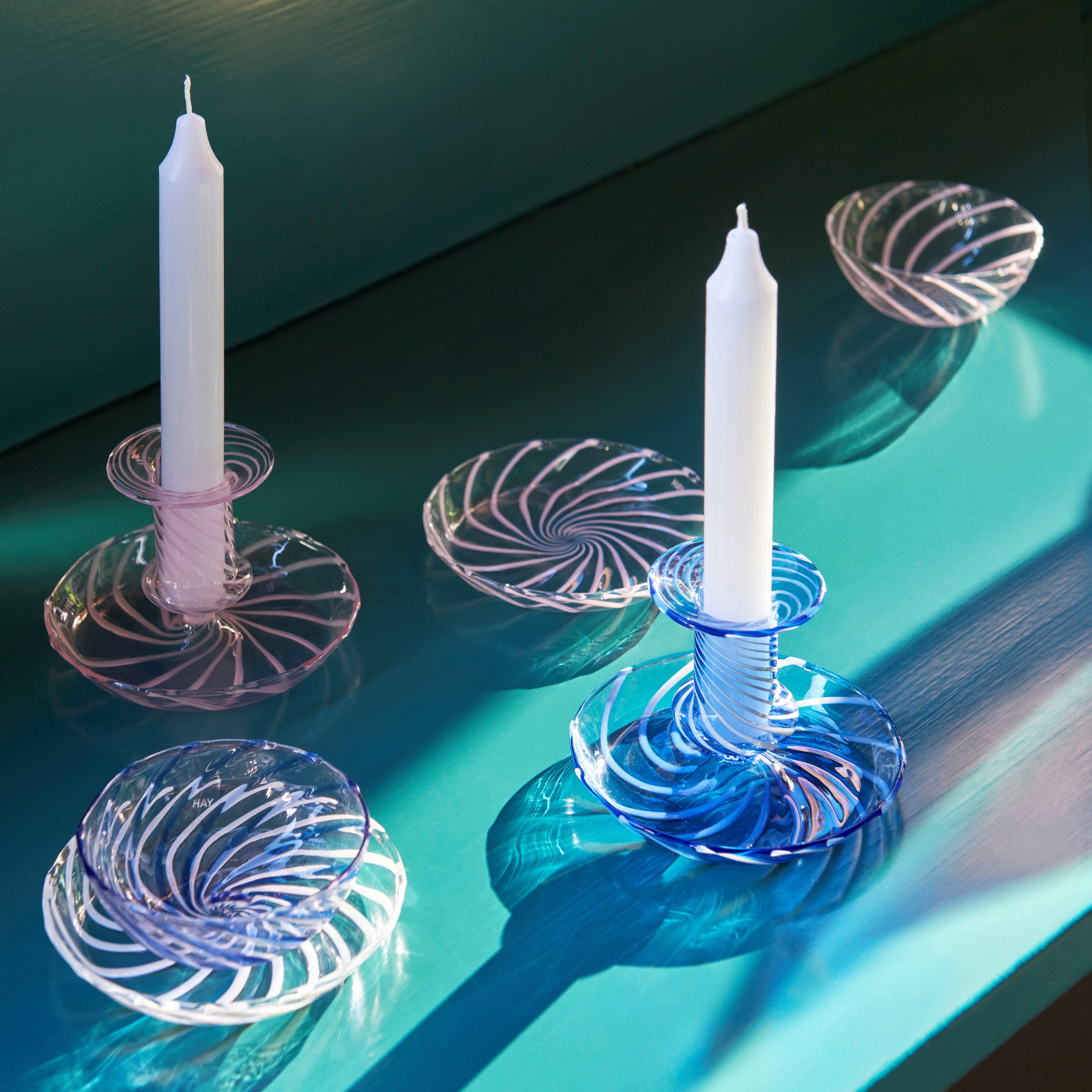 HAY Flare Stripe Kandelaar - Lichtblauw/Wit