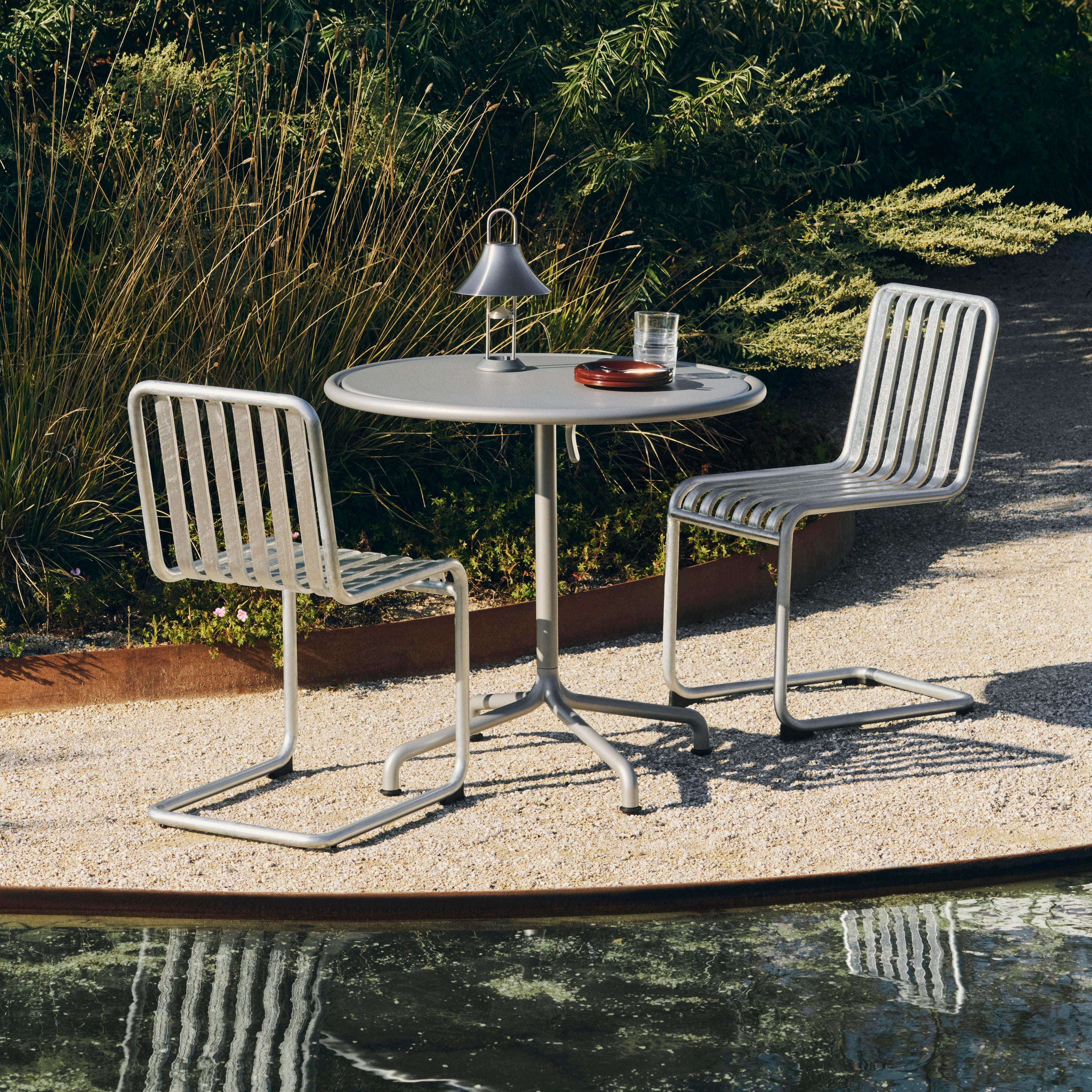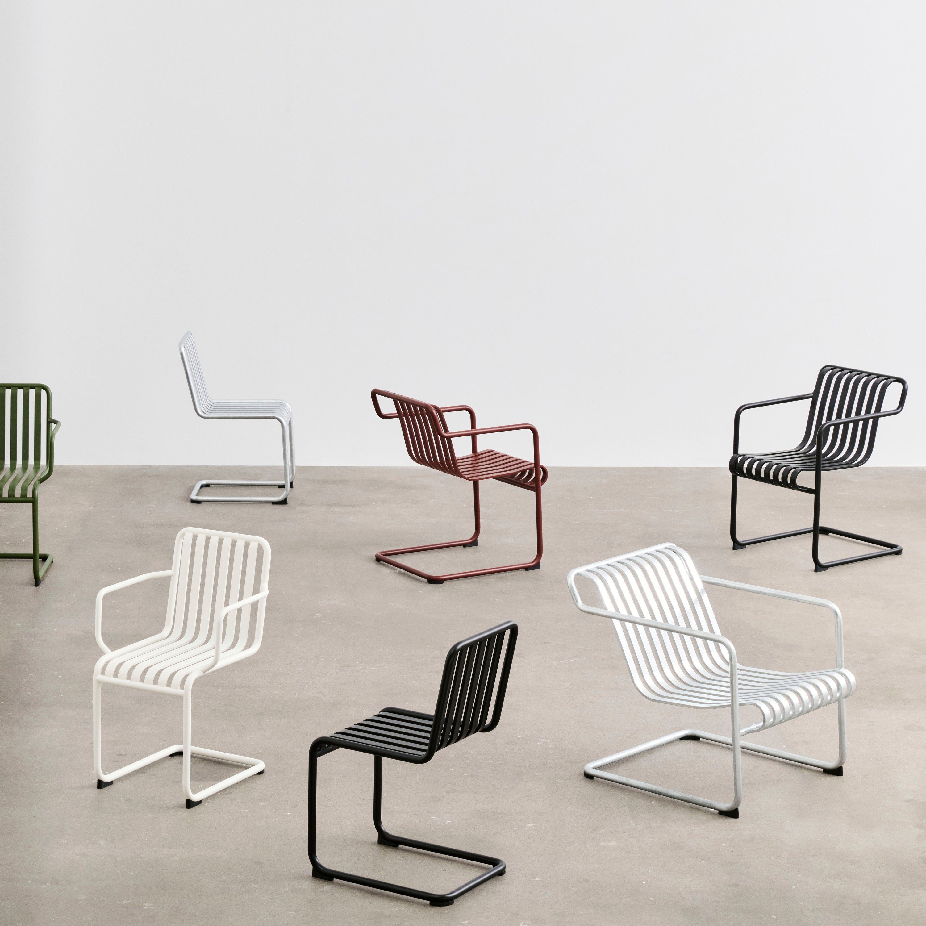 Palissade, maar dan met lef De Cantilever-serie van HAY is een gedurfde doorontwikkeling van het iconische Palissade ontwerp van Ronan & Erwan Bouroullec. Waar andere stoelen staan, lijkt deze te zweven. De buizen volgen geen vaste lijn, maar dansen als het ware door het ontwerp — strak en licht tegelijk. De kracht van deze serie zit in de balans: robuust staal met een verfijnde curve, comfort zonder kussens, elegantie zonder opsmuk. Dankzij het zwevende frame veren de stoelen subtiel mee en voelt elke zitbeweging verrassend licht. Het resultaat? Buitenmeubilair dat net zo goed aanvoelt als het eruitziet.