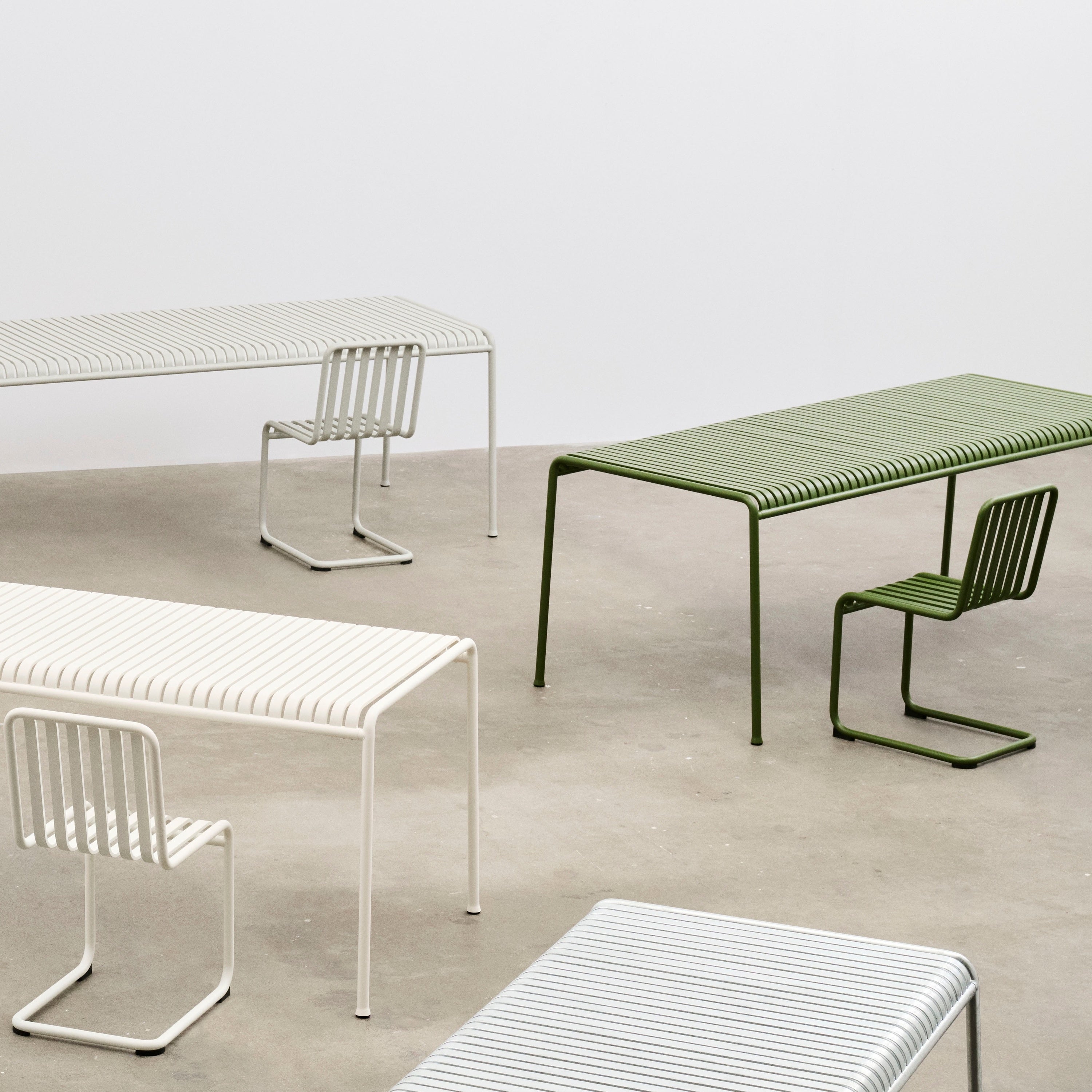 Palissade, maar dan met lef De Cantilever-serie van HAY is een gedurfde doorontwikkeling van het iconische Palissade ontwerp van Ronan & Erwan Bouroullec. Waar andere stoelen staan, lijkt deze te zweven. De buizen volgen geen vaste lijn, maar dansen als het ware door het ontwerp — strak en licht tegelijk. De kracht van deze serie zit in de balans: robuust staal met een verfijnde curve, comfort zonder kussens, elegantie zonder opsmuk. Dankzij het zwevende frame veren de stoelen subtiel mee en voelt elke zitbeweging verrassend licht. Het resultaat? Buitenmeubilair dat net zo goed aanvoelt als het eruitziet.