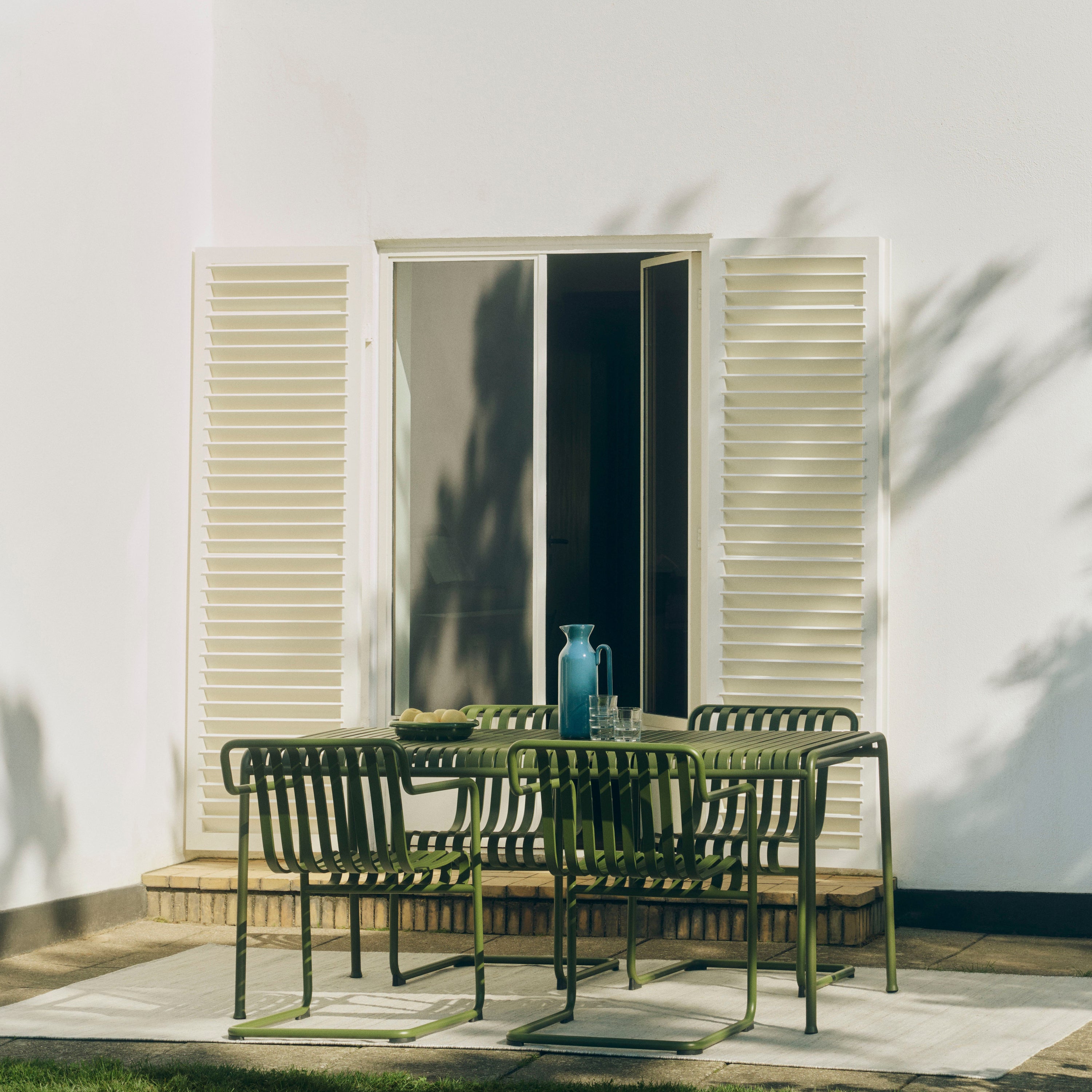 Palissade, maar dan met lef De Cantilever-serie van HAY is een gedurfde doorontwikkeling van het iconische Palissade ontwerp van Ronan & Erwan Bouroullec. Waar andere stoelen staan, lijkt deze te zweven. De buizen volgen geen vaste lijn, maar dansen als het ware door het ontwerp — strak en licht tegelijk. De kracht van deze serie zit in de balans: robuust staal met een verfijnde curve, comfort zonder kussens, elegantie zonder opsmuk. Dankzij het zwevende frame veren de stoelen subtiel mee en voelt elke zitbeweging verrassend licht. Het resultaat? Buitenmeubilair dat net zo goed aanvoelt als het eruitziet.