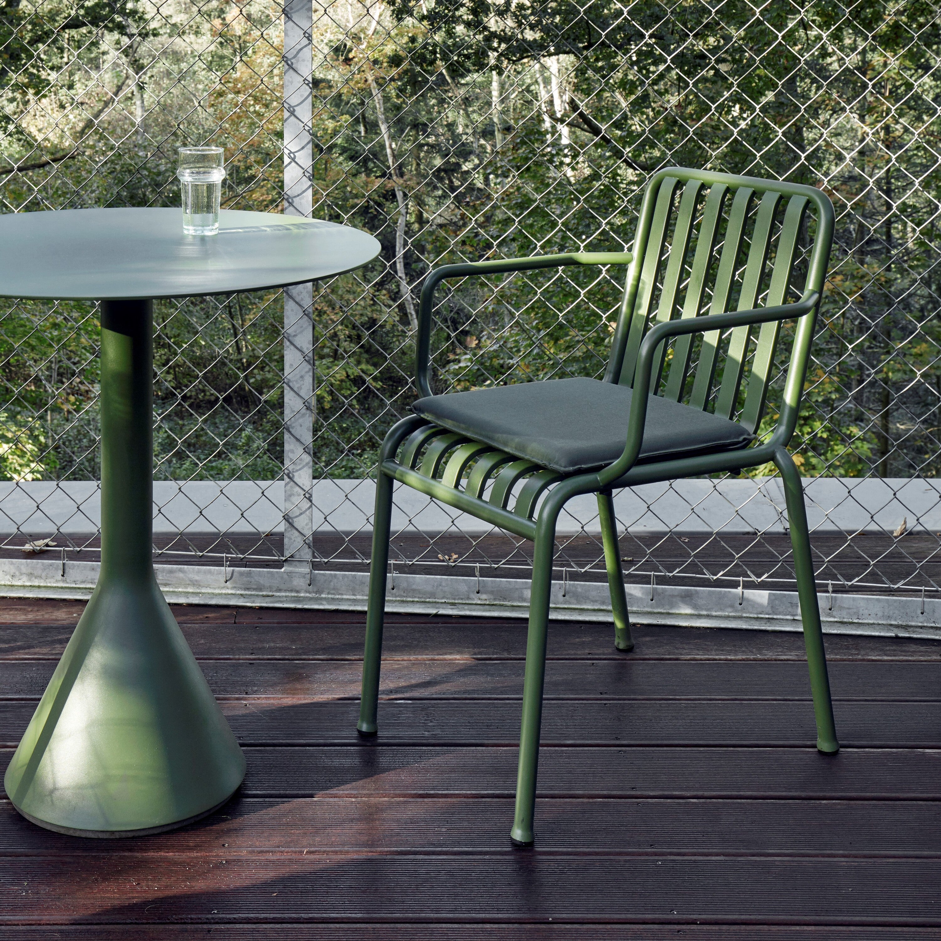 Stijlvol design in jouw tuin De gebroeders Erwan en Ronan Bouroullec vormen een gerenommeerd designersduo en hebben hun krachten gebundeld met HAY. Het resultaat is een bijzondere tuinserie, genaamd Palissade. De ontwerpers gebruiken gepoedercoat staal bij de Cone tafel, zodat hij lang mooi blijft wanneer je hem buiten zet. De voet is verstevigd met beton, dus je hoeft niet bang te zijn dat hij omver waait.