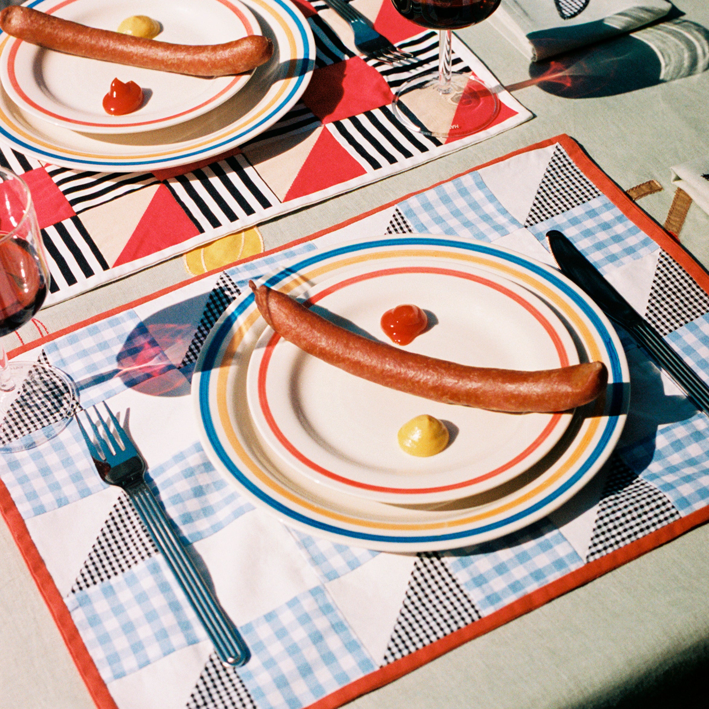 - Set van 2 borden met een speels gekleurd randje