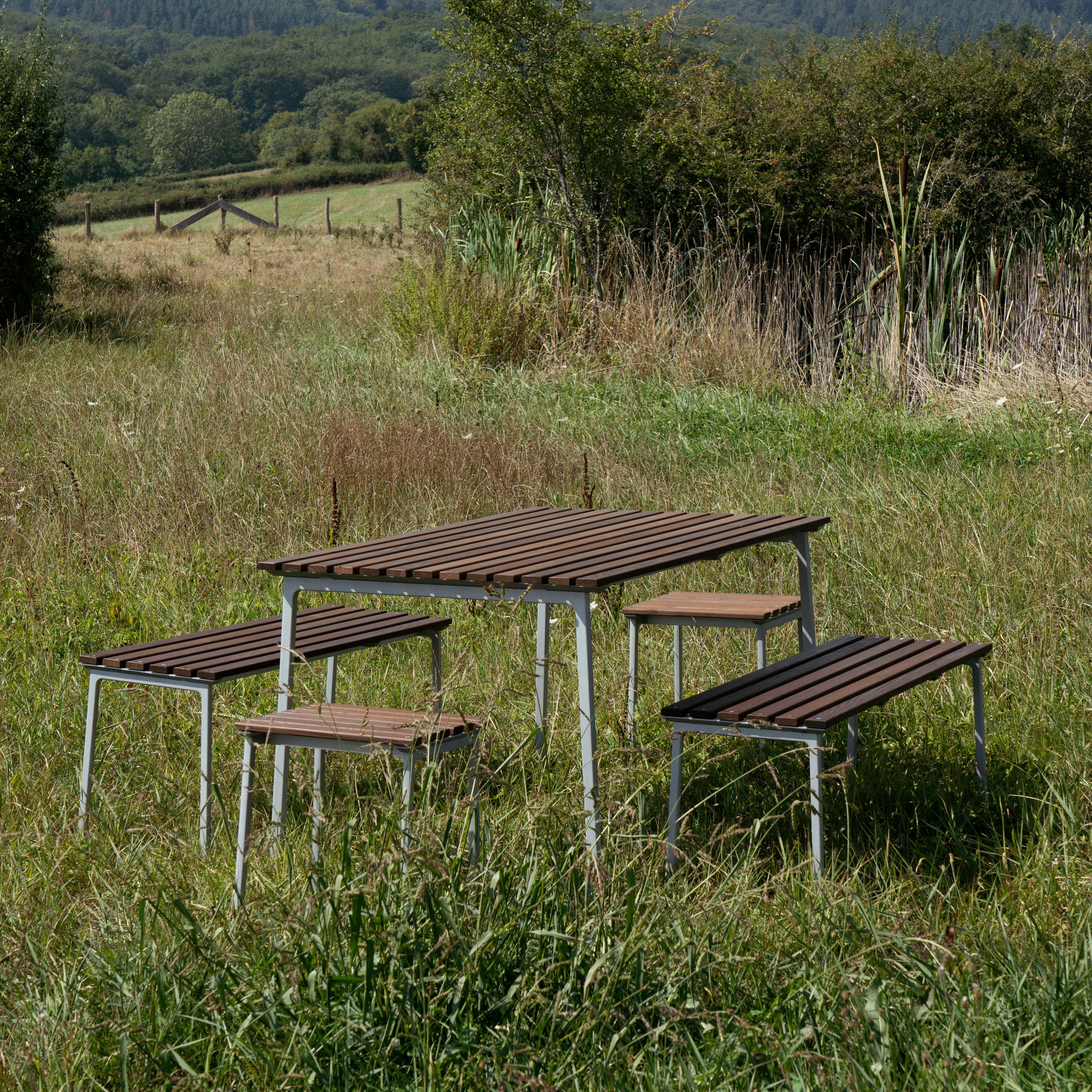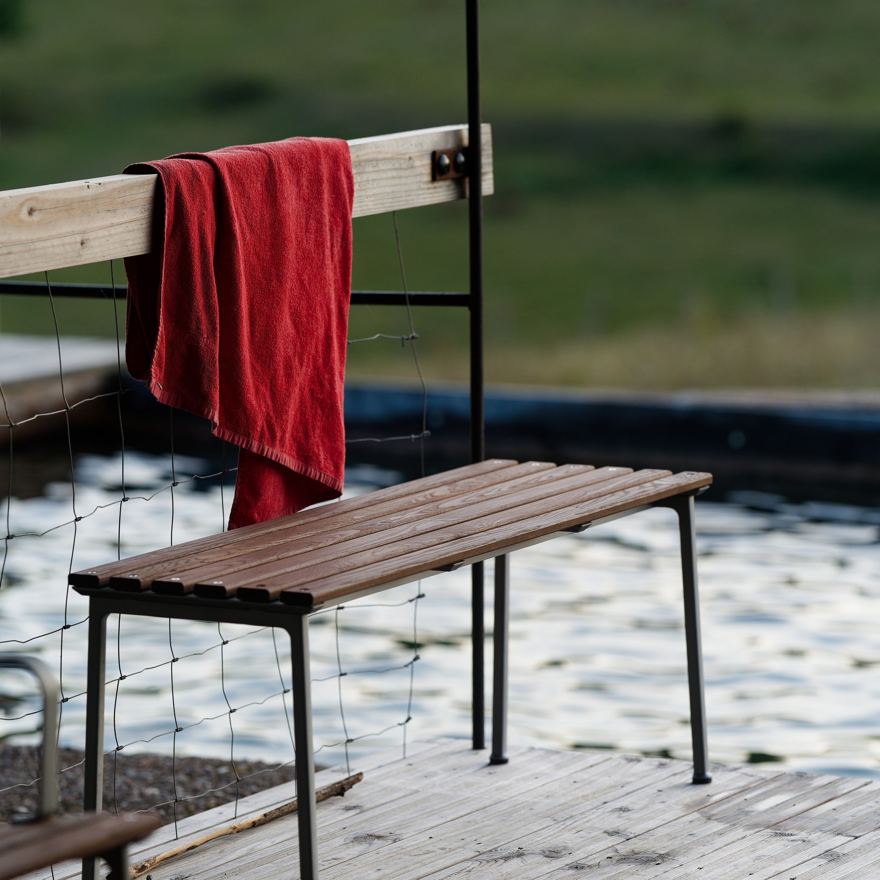 - In een warme houttint die natuurlijk blendt met de omgeving