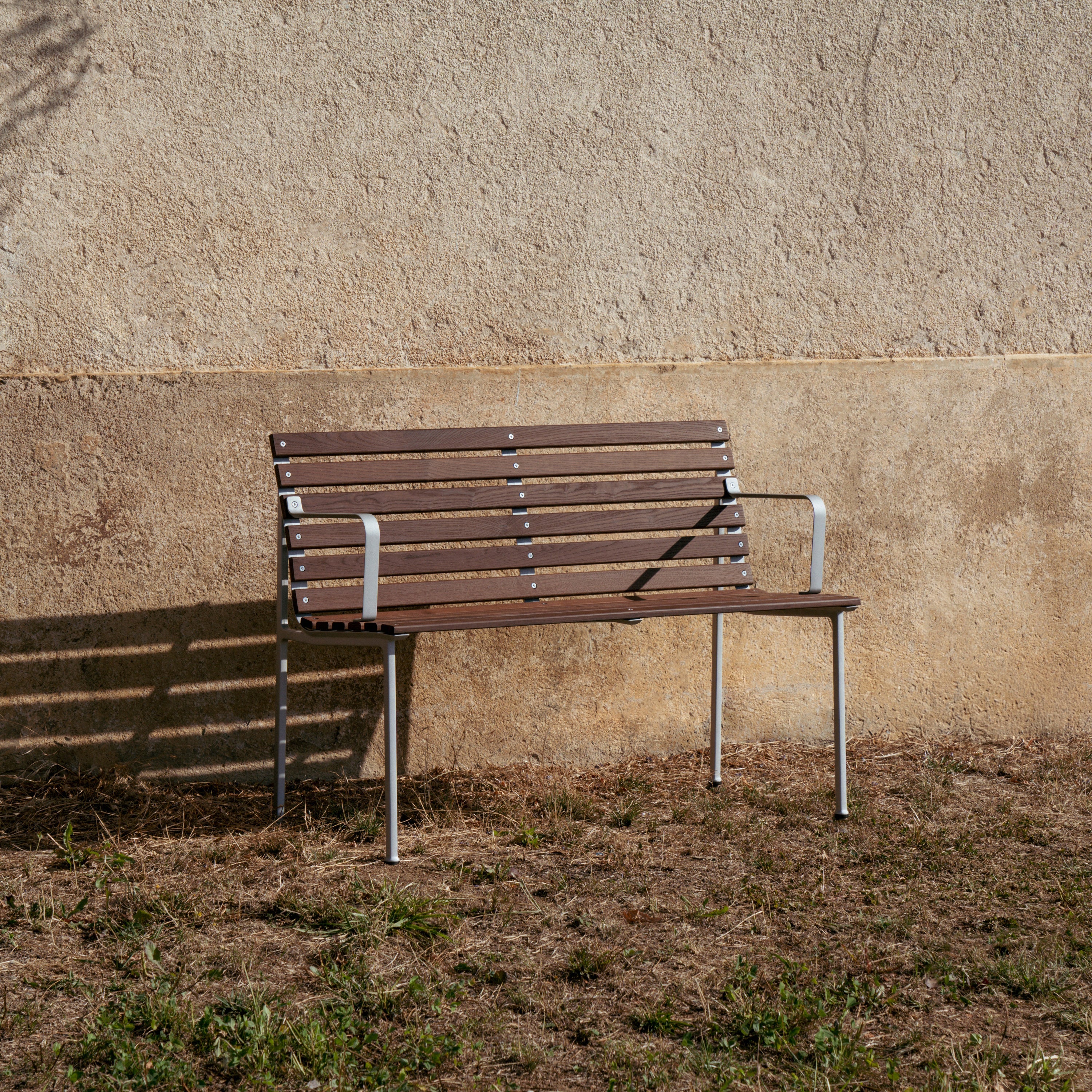 - In een warme houttint die natuurlijk blendt met de omgeving