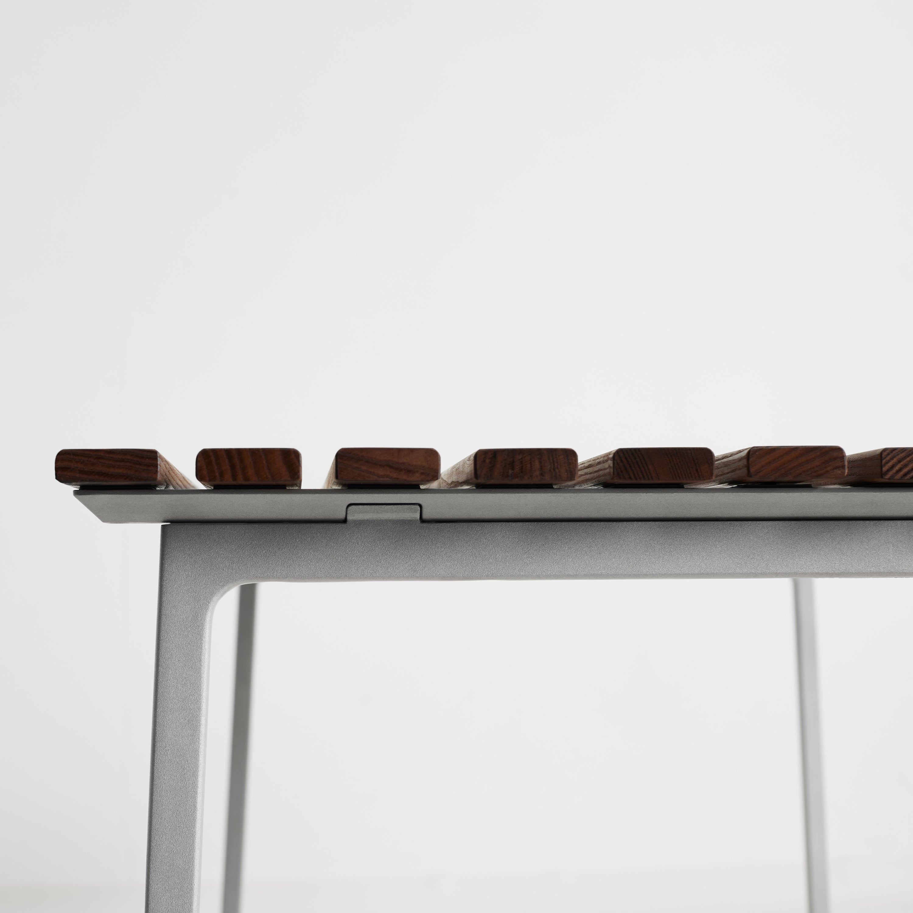 - Gemaakt van gegoten aluminium en hittebehandeld essenhout