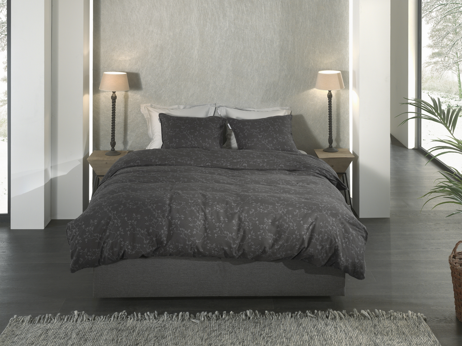 Heckett Lane Dekbedovertrek Flanel Alloro - anthracite