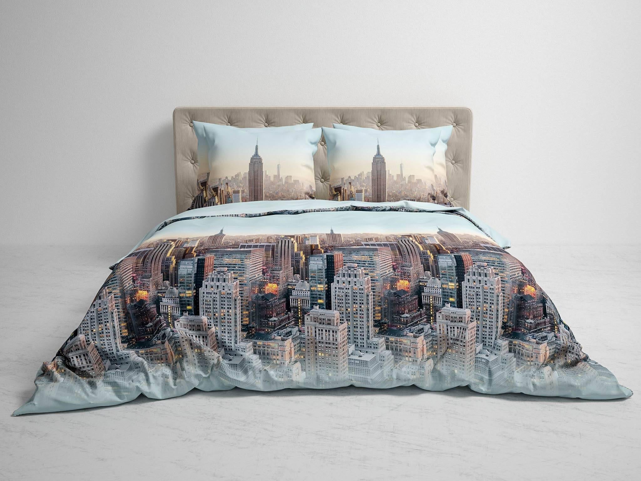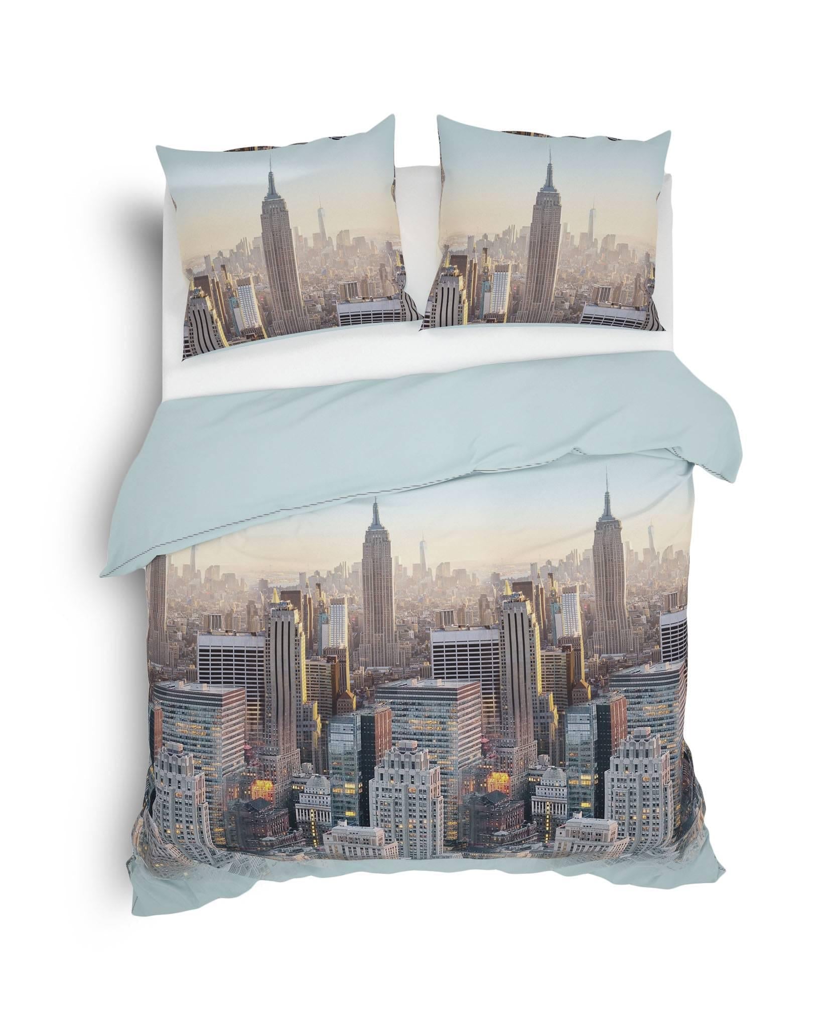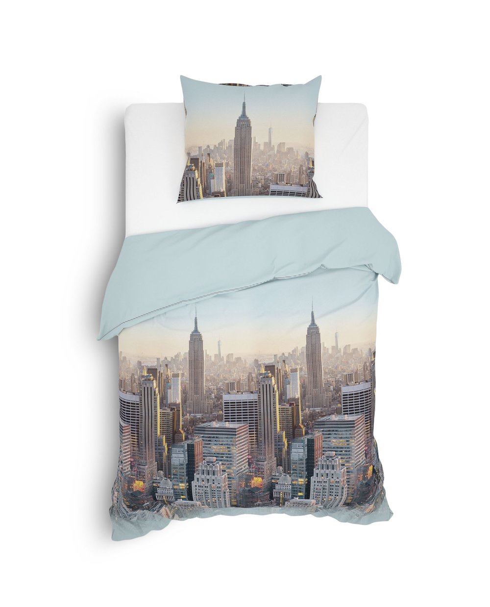 Heckett & Lane dekbedovertrek Hayden heeft een prachtige print van de stad New York bij zonsondergang. Het overtrek heeft grijstinten en een helder blauwe lucht met weerkaatsing van de zon. Een schitterend plaatje waar je urenlang naar kunt kijken. Gemaakt van 100% hoogwaardig katoen-flanel. Flanel is opgeruwd katoen, hierdoor voelt het extra zacht aan. Katoen-flanel houdt de warmte ook goed vast. Het overtrek zorgt dus voor een ultieme nachtrust. Voorzien van een dubbele doorlopende instopstrook. Hierdoor ook geschikt voor extra lange dekbedden. Het overtrek komt met bijpassende kussenslopen en heeft het GOTS (Global Organic Textile Standard) keurmerk.