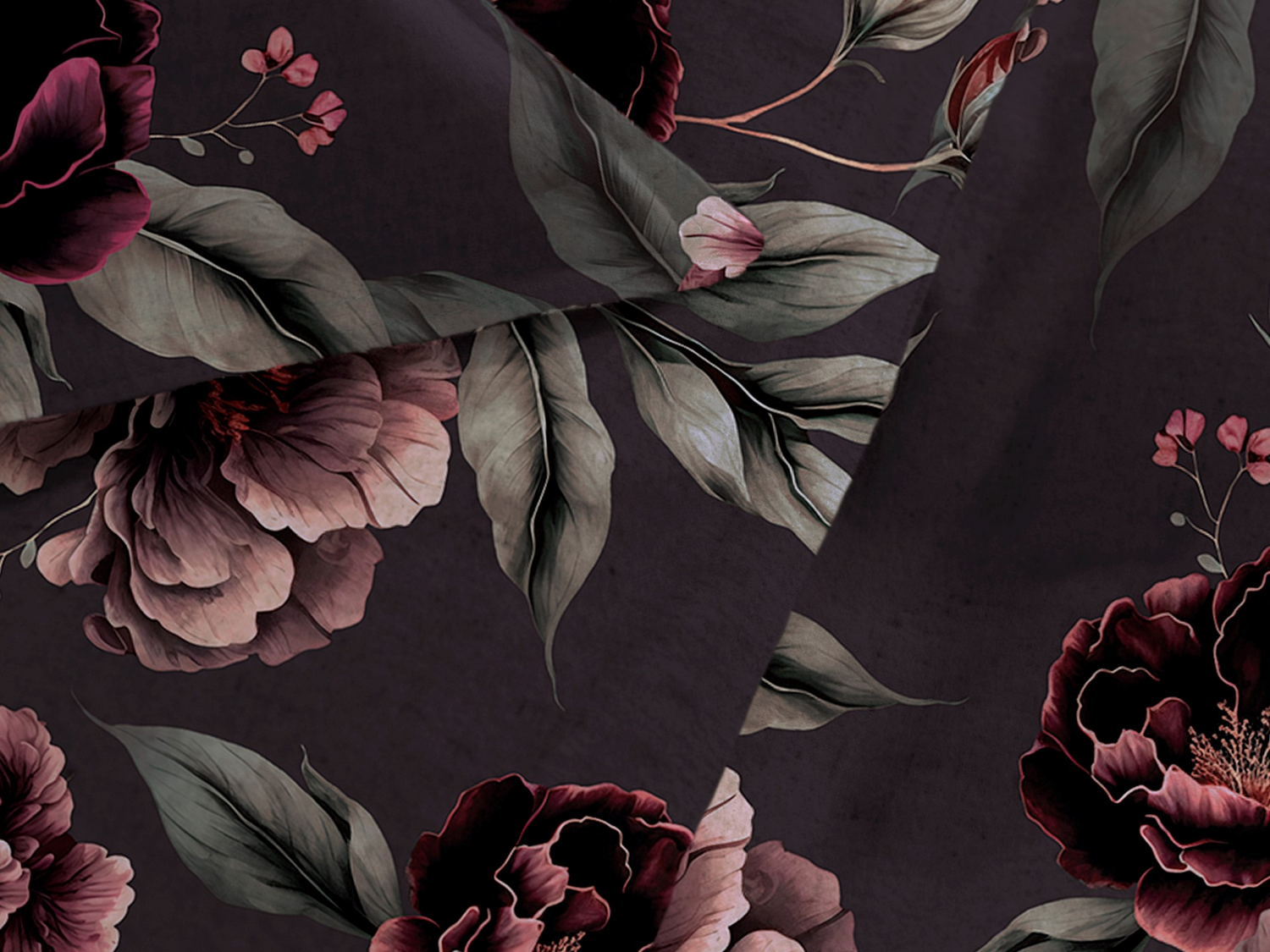 - Diep donkerpaars met elegant bordeaux bloemenpatroon