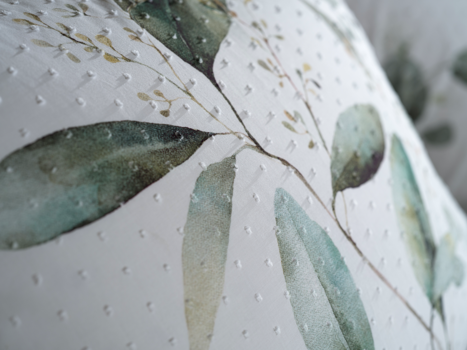 Geef je slaapkamer een elegante en verfijnde look met het Eduardo dekbedovertrek. Dit prachtige dekbedovertrek in wit, gemaakt van 100% katoen, heeft een luxe clip-shear structuur aan de voorkant, die zorgt voor een unieke textuur en stijlvolle uitstraling. Het subtiele bladerenpatroon brengt een frisse en rustgevende sfeer in je slaapruimte, ideaal voor een serene ambiance.