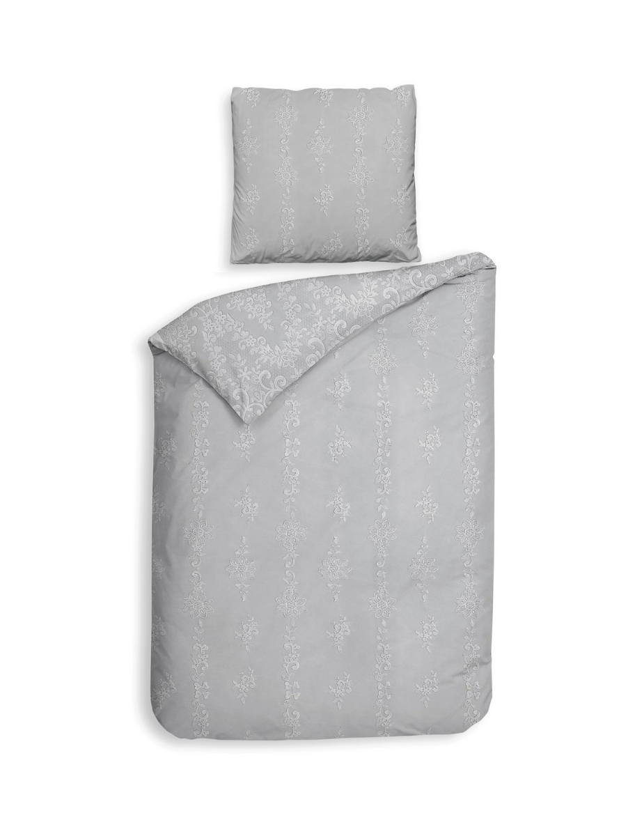 Kies voor kwaliteit met het mooie Lacey dekbedovertrek uit de collectie van Heckett Lane. Het Lacey dekbedovertrek is gemaakt van 100% katoen-dobby materiaal. De grijze kleur zorgt voor een stijlvolle en tijdloze uitstraling, en heeft een prachtige geborduurde afwerking. Aan de onderkant voorzien van een dubbel doorlopende instopstrook. Hierdoor ook geschikt voor extra lange dekbedden. Op beide zijden van het overtrek is een andere print te zien.