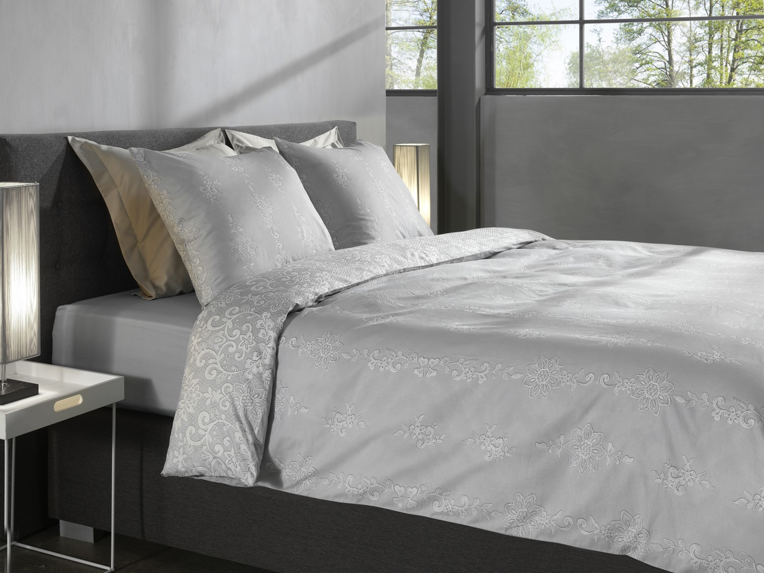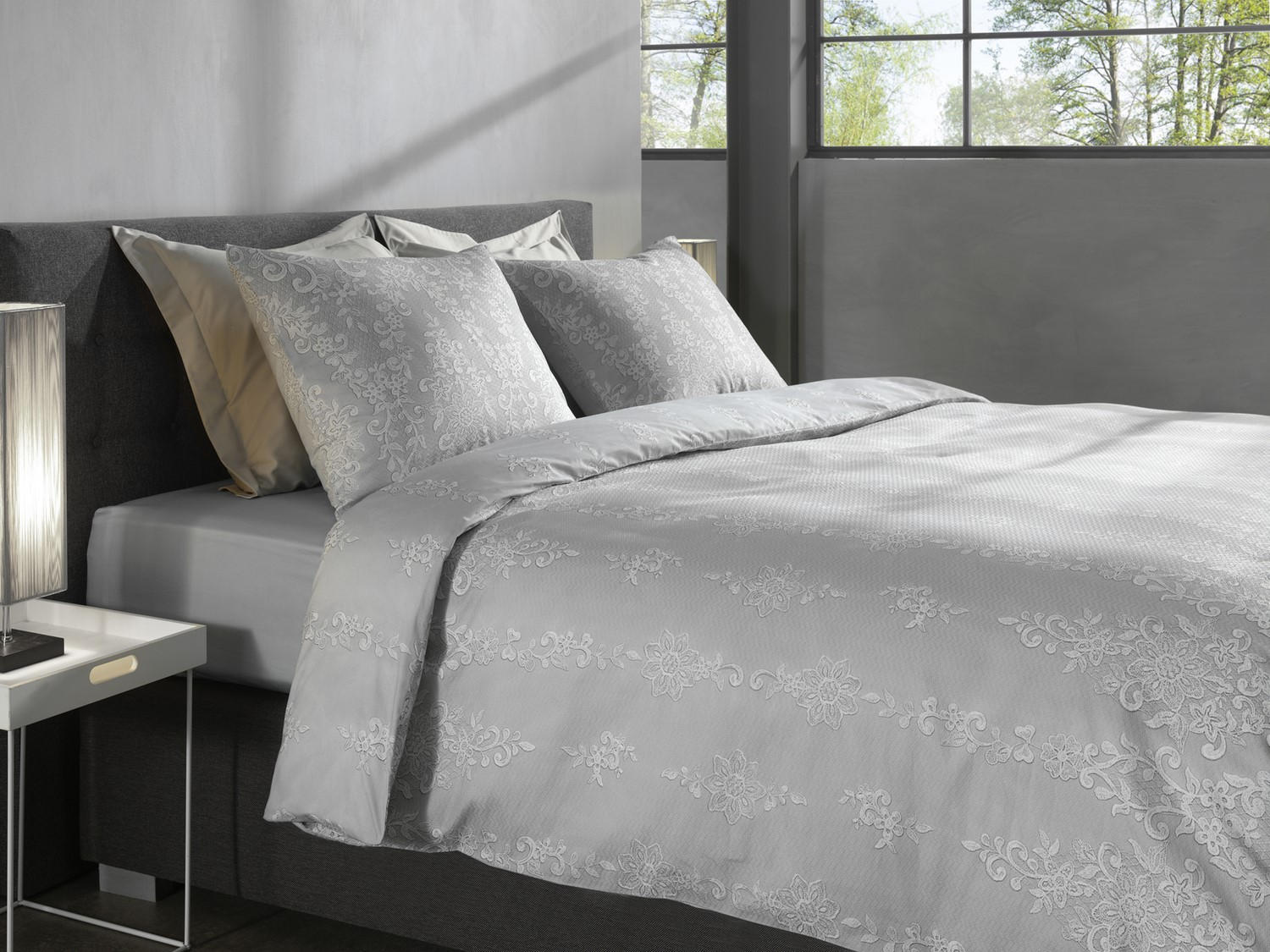Kies voor kwaliteit met het mooie Lacey dekbedovertrek uit de collectie van Heckett Lane. Het Lacey dekbedovertrek is gemaakt van 100% katoen-dobby materiaal. De grijze kleur zorgt voor een stijlvolle en tijdloze uitstraling, en heeft een prachtige geborduurde afwerking. Aan de onderkant voorzien van een dubbel doorlopende instopstrook. Hierdoor ook geschikt voor extra lange dekbedden. Op beide zijden van het overtrek is een andere print te zien.