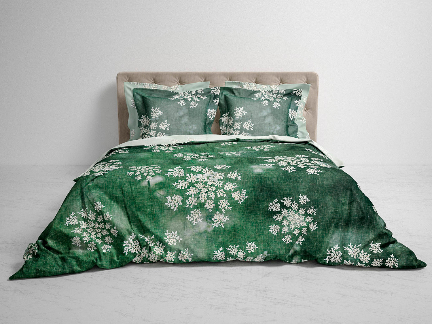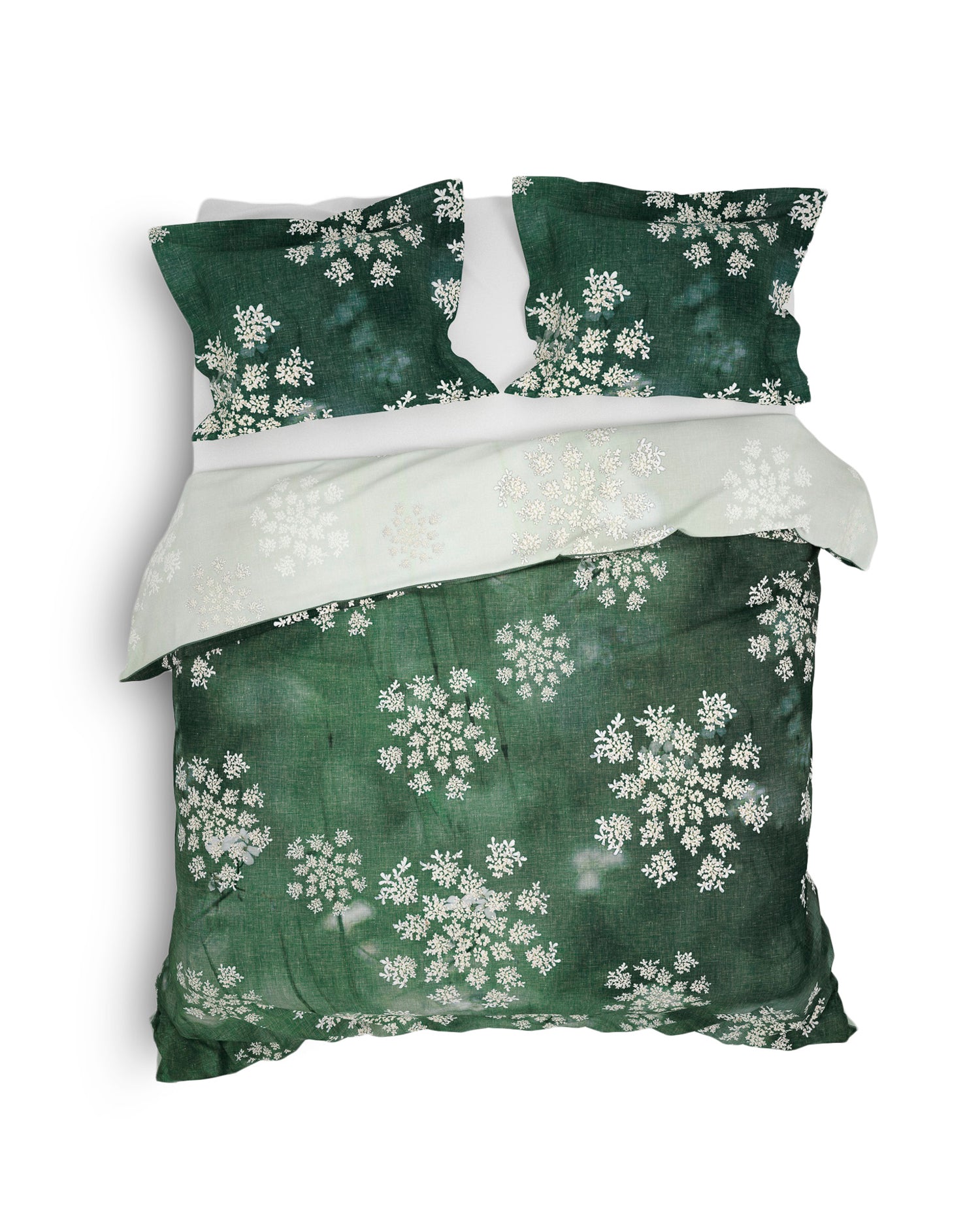 De combinatie van een bijzondere print, linnenlook en de prachtige kleur 'Shale Green' maakt dekbedovertrek Eleri van Heckett & Lane uniek. Het dekbedovertrek is gemaakt van 100% ECO katoen en is verkrijgbaar in verschillende maten.