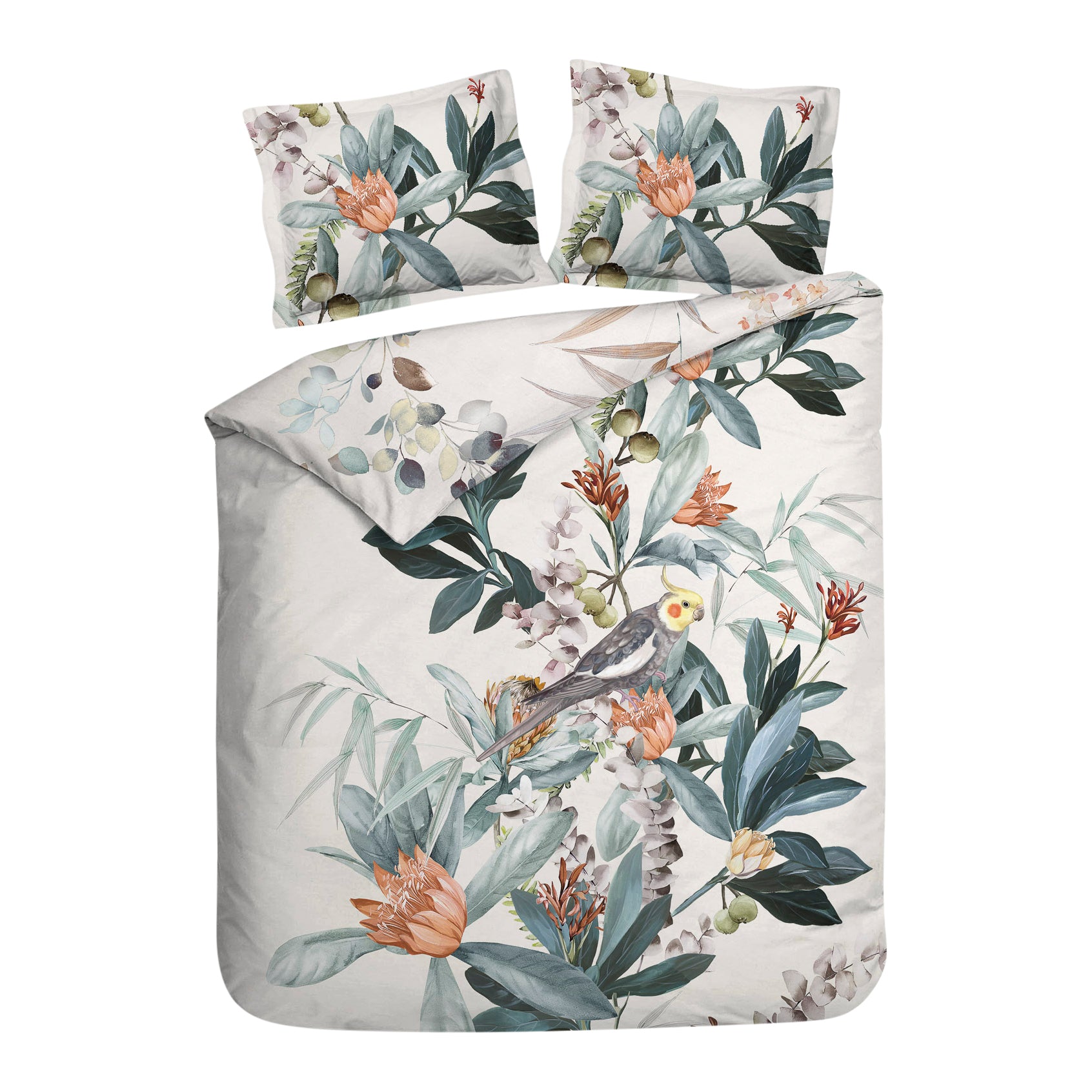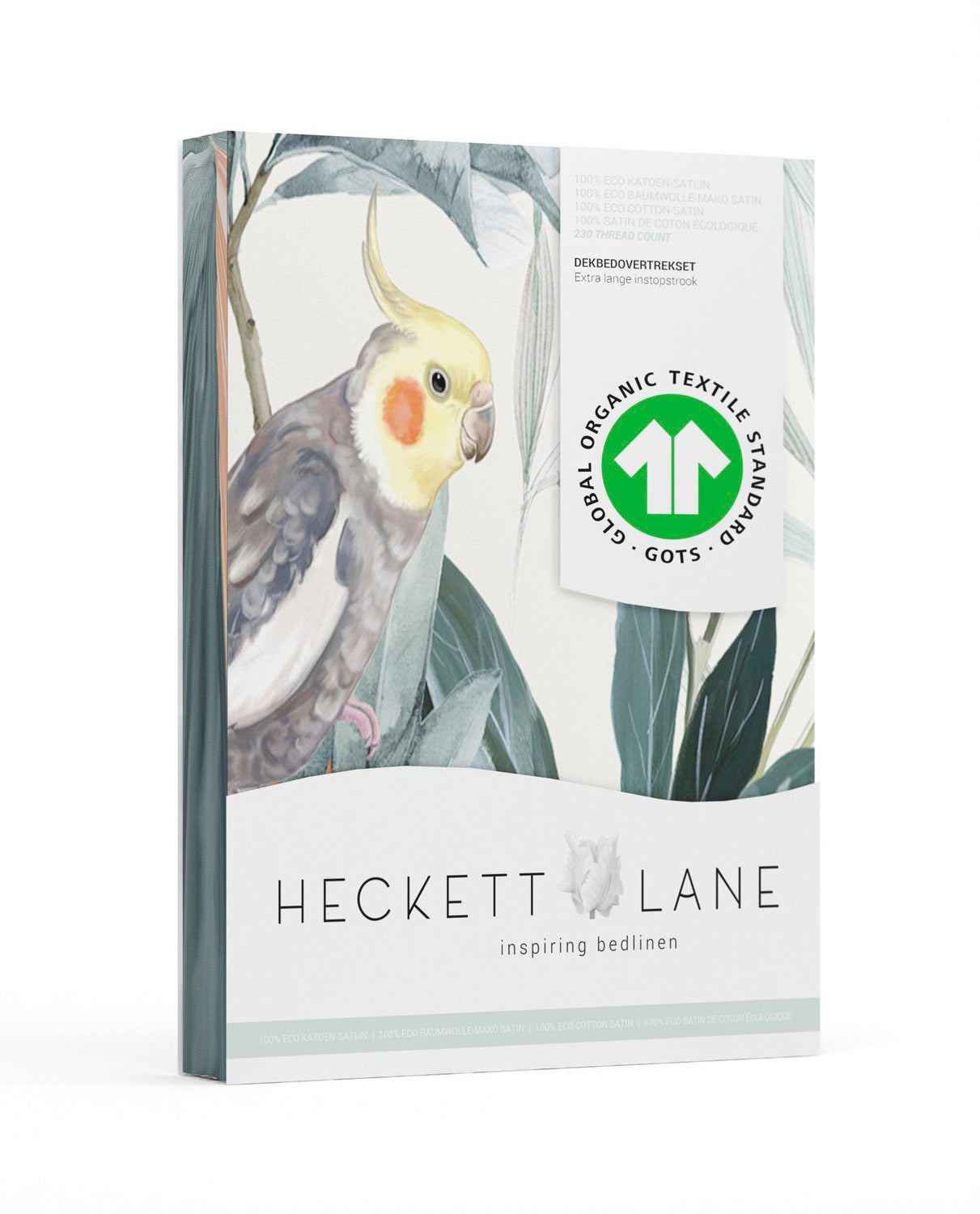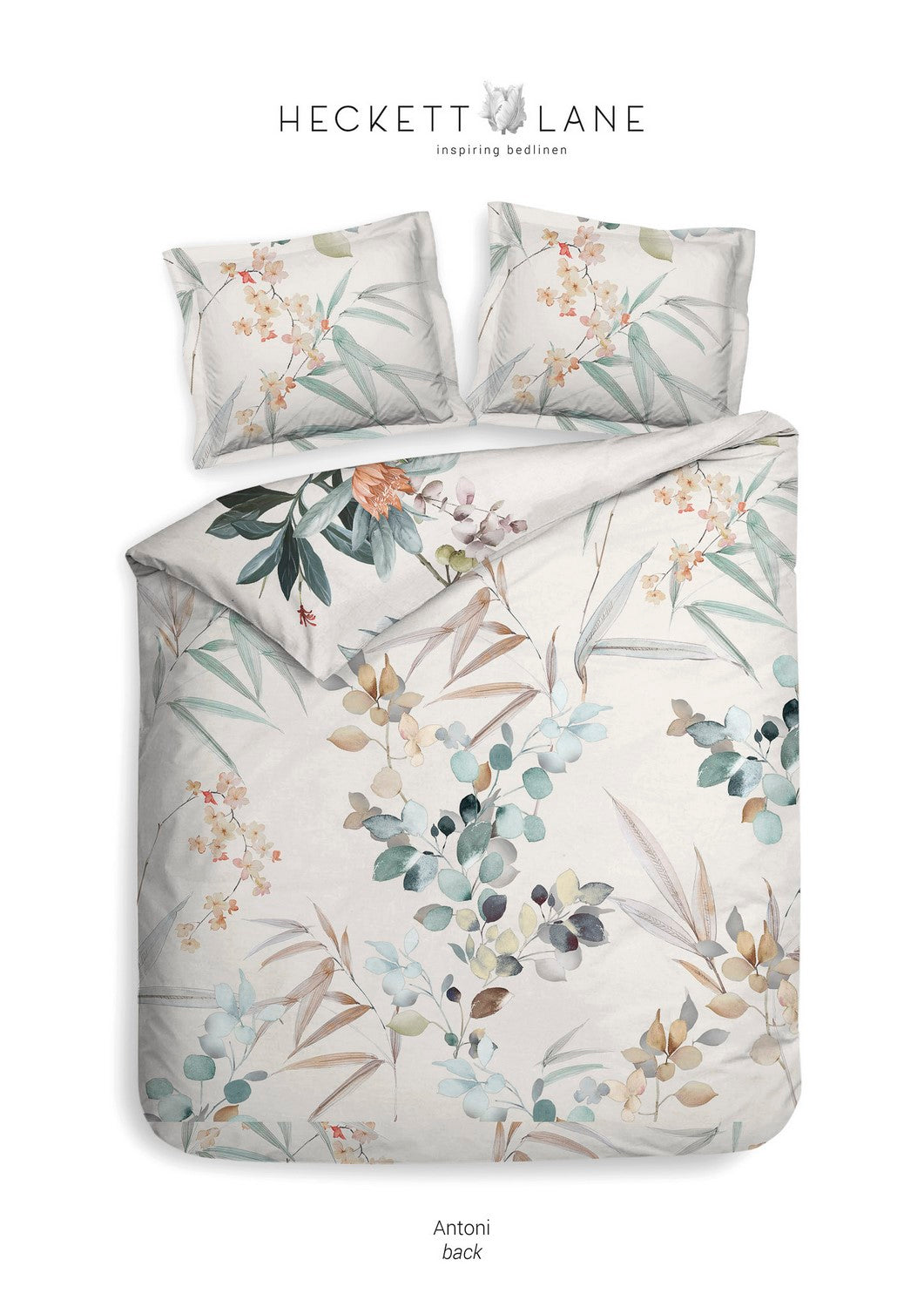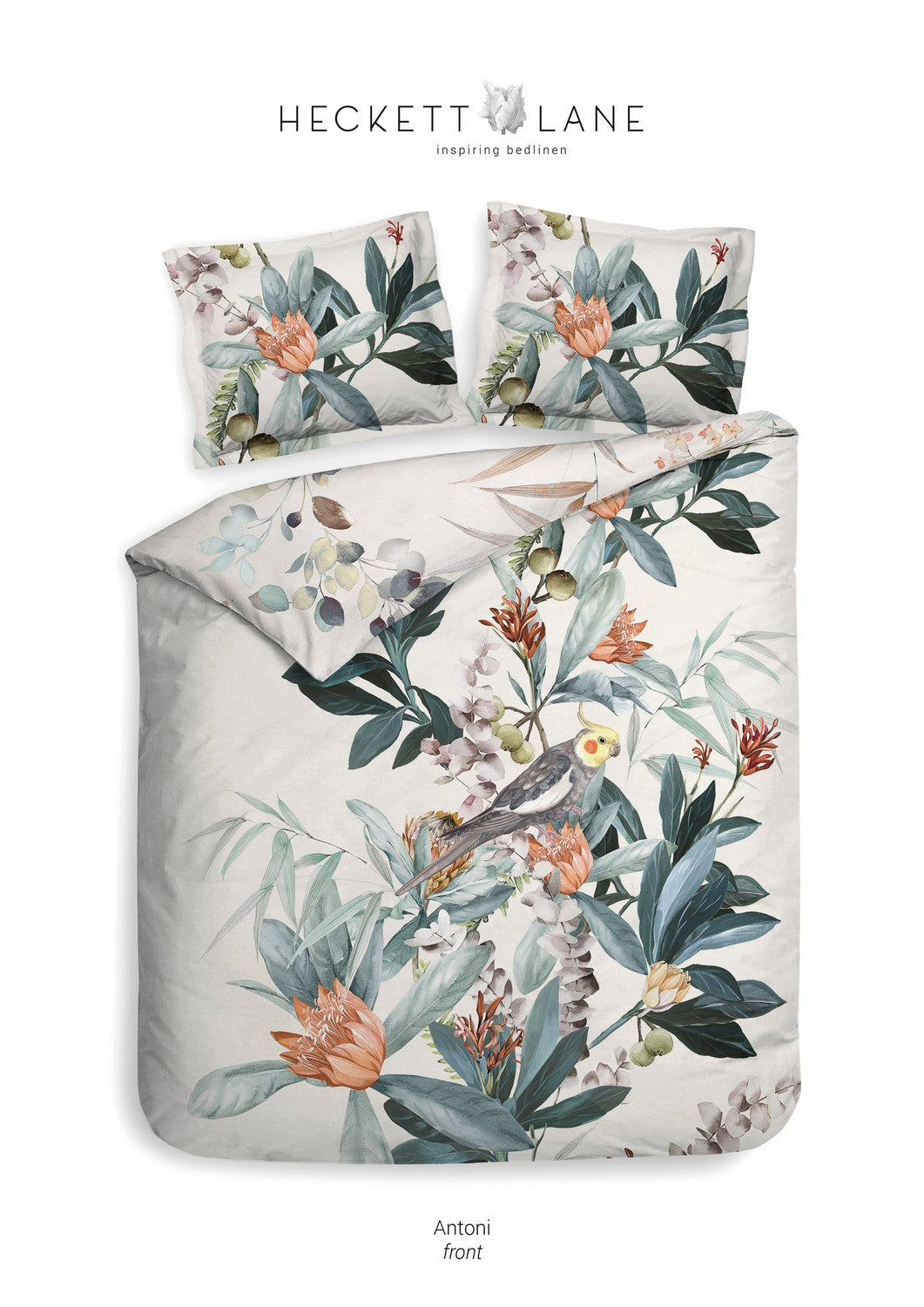 Haal de natuur in huis met dit Antoni dekbedovertrek van het merk Heckett & Lane. Op de voorzijde van dit dubbelzijdige overtrek zijn exotische planten en bloemen met een parkiet in het midden te zien. Op de achterzijde zijn dezelfde bladeren te zien, maar dan in een subtielere print. Dit fraaie natuur dekbedovertrek is gemaakt van 100% katoen-satijn, wat het koel maakt in de zomer en warm in de winter. Katoen-satijn voelt heerlijk zacht aan en is ademend en vocht absorberend. Door de satijnbinding krijgt het overtrek zijn subtiele glans en komt de print nog mooier uit. Het overtrek heeft het GOTS (Global Organic Textile Standard) keurmerk. Het overtrek komt met bijpassende kussenslopen, die voorzien zijn van een stijlvolle Oxford-rand. Daarnaast is heeft het overtrek een dubbele instopstrook, waardoor het ook geschikt is voor langere dekbedden.