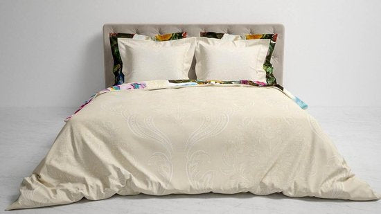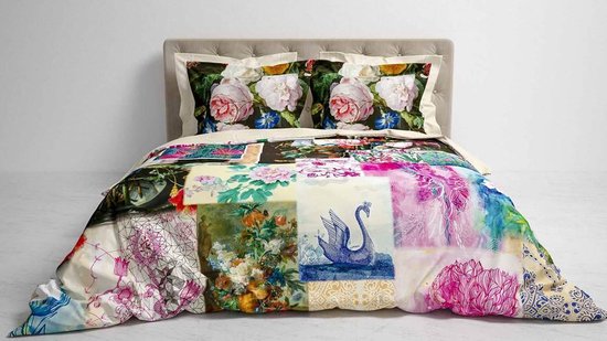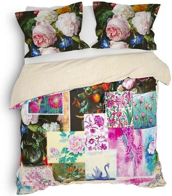Dit heerlijke dekbedovertrek is van het merk Heckett & Lane. Dit overtrek is gemaakt van 100% katoen satijn, waardoor het heerlijk zacht en soepel aanvoelt. Daarnaast is katoen ademend en vocht absorberend. Door de satijn binding krijgt het overtrek zijn subtiele glans en komen de kleuren nog mooier uit. Op het overtrek is een mooie collage met bloemen in verschillende kleuren afgebeeld. Door de kleurrijke prints fleurt je slaapkamer helemaal op. Op de achterzijde is een subtiel dessin in een mooie crème kleur afgebeeld. De bijpassende kussenslopen zijn afgewerkt met Oxford-randen en het overtrek heeft een dubbele doorlopende instopstrook.