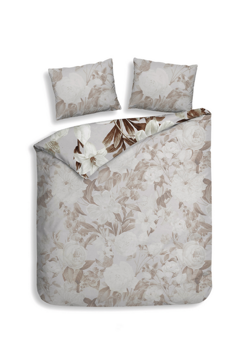 Breng een vleugje verfijning en natuur in je slaapkamer met het Danna dekbedovertrek van Heckett Lane. Dit luxe dekbedovertrek is vervaardigd van 100% katoen satijn, wat zorgt voor een zijdezachte textuur en een elegante glans. De prachtige print van witte bloemen en bruine bladeren op een warme beige achtergrond creëert een serene en harmonieuze sfeer, perfect voor elke slaapkamer.