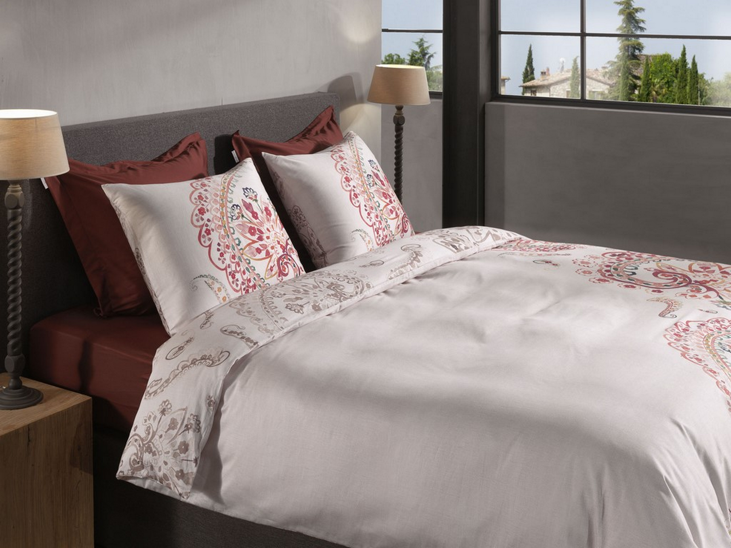 Laat je slaapkamer stralen met de tijdloze schoonheid van dekbedovertrek Ruby uit de collectie van Heckett Lane. Met dit prachtige naturel overtrek met Paisley print zorg je voor een luxueus gevoel en een zijdezachte kwaliteit voor een heerlijke nachtrust. Dankzij de ademende eigenschappen van de hoogwaardige katoen satijnen stof blijf je koel in de zomer en warm in de winter. Bovendien is het van nature hypoallergeen en geschikt voor de gevoelige huid.