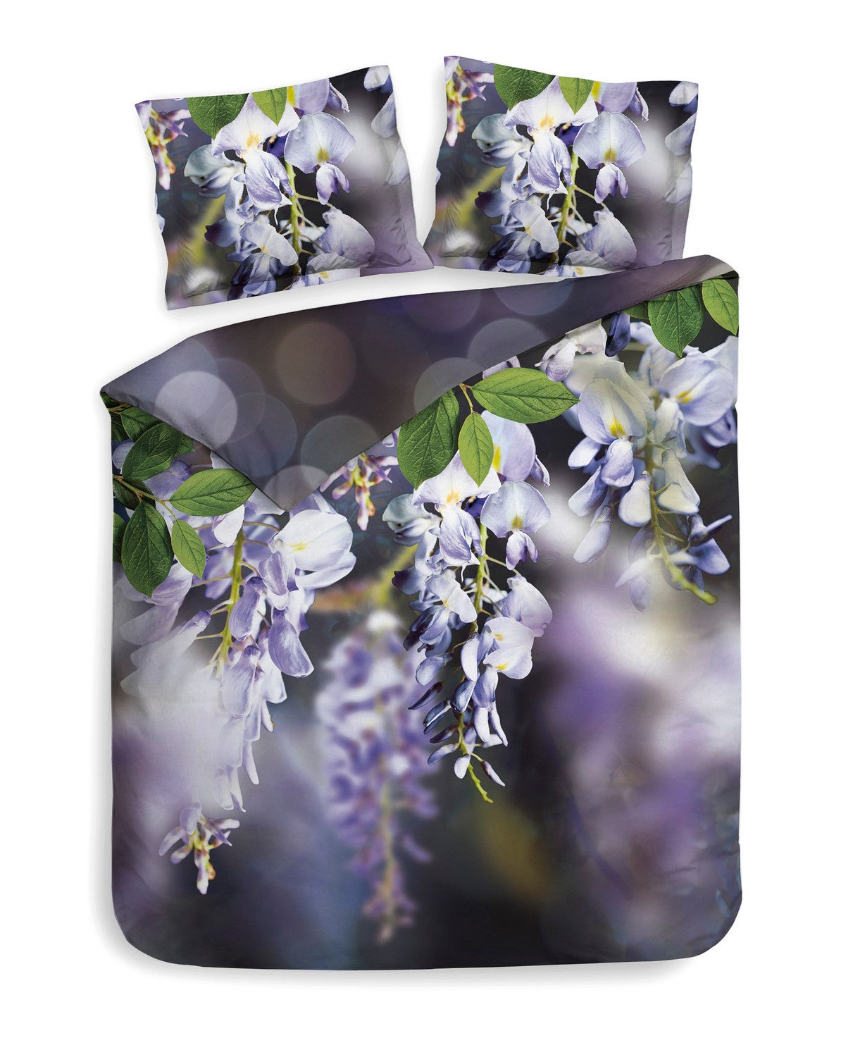 Dit prachtige paarse dekbedovertrek is de Yuna van Heckett & Lane. Dit dekbedovertrek heeft de uitstraling en kwaliteit, zoals we die van Heckett & Lane kennen. Deze prachtige paarse hangplanten zullen extra sfeer geven aan je slaapkamer. De planten zijn aan de voorzijde van dichtbij gefotografeerd en op de achterzijde zie je een paars dessin met onscherpe hangplanten. Het overtrek wordt geleverd met bijpassende kussenslopen, deze zijn voorzien van een Oxford-rand. De dubbele instopstrook over de gehele breedte maakt het dekbedovertrek ook geschikt voor extra lange dekbedden. Dit dekbedovertrek is gemaakt van 100% katoen- satijn en heeft het GOTS (Global Organic Textile Standard) keurmerk. Door de hoogwaardige kwaliteit voelt het overtrek heerlijk zacht en comfortabel aan en is het goed ademend. Door de satijnbinding krijgt het dekbedovertrek zijn subtiele glans. Ga voor optimaal slaapcomfort en droomweg met dit heerlijke dekbedovertrek.