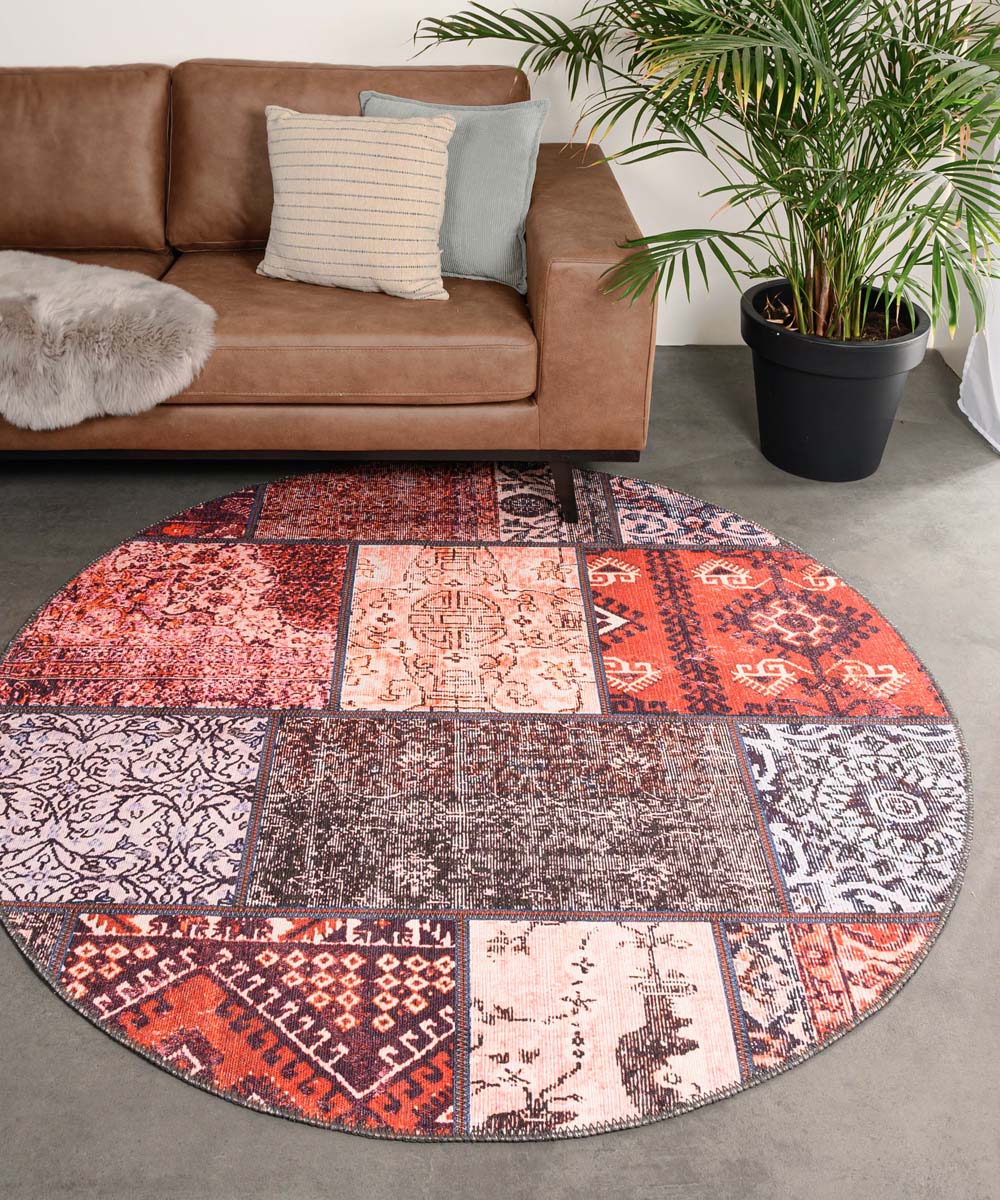 Heritaged Rond patchwork vloerkleed - Fade No.1 rood|multi - 305 cm