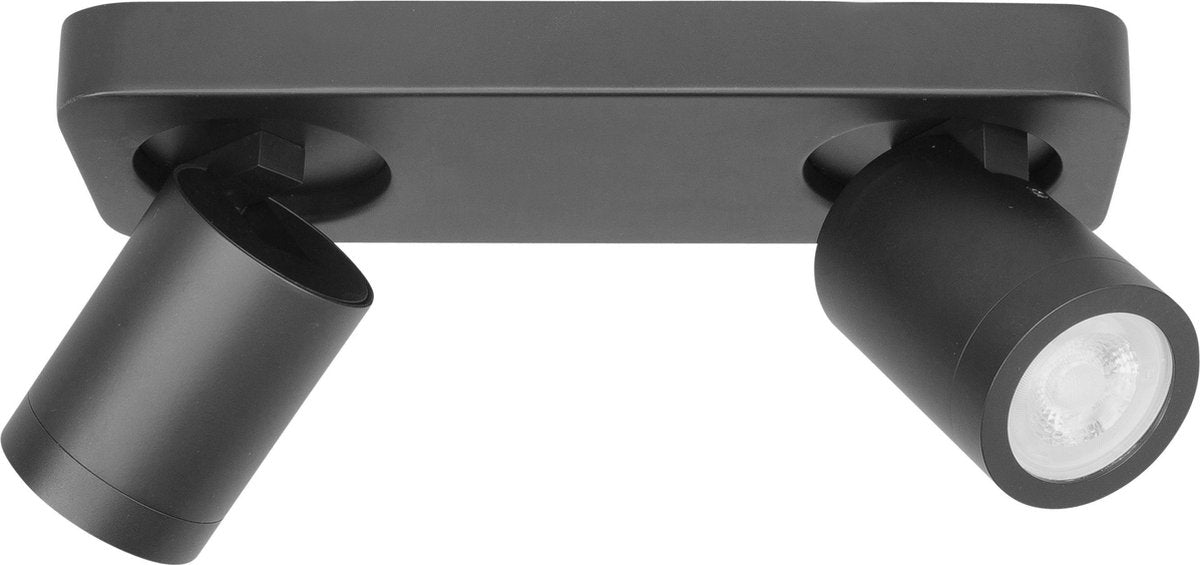 HighLight spot Oliver 2 lichts balk - zwart is een mooie verstelbare duo spot van metaal die voor betovering in de kamer zorgt. De spot met de rechthoekige vorm heeft 2 lichtpunten en highlights elke gewenste plaats in huis. Volledig draai- en kantelbaar en verkrijgbaar in verschillende uitvoeringen. In je slaapkamer, toilet, woonkamer of keuken zijn spots de slimste oplossing. Ze besparen veel ruimte en geven een heldere blik tijdens het omkleden, lezen, eten of koken. Zwarte opbouwspot Oliver is 11 cm hoog en 26 cm breed. De fitting in deze lamp is GU10. Is de lichtbron hierbij inbegrepen? Nee. In combinatie met dimbare lichtbronnen en aansluiting op een externe dimmer is deze zwarte opbouwspot dimbaar. Zo is jouw spotlight altijd in opperbeste stemming!