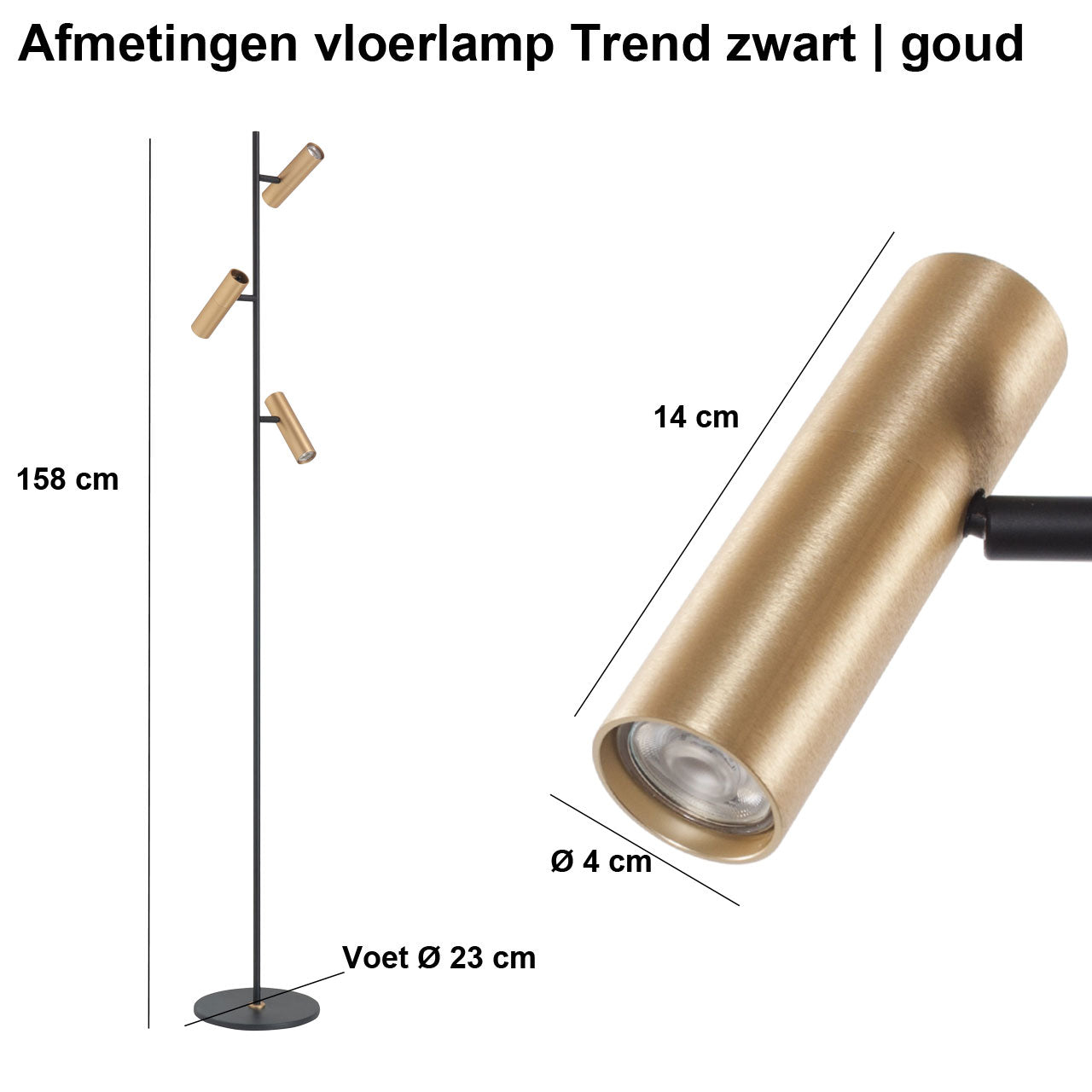 Highlight Vloerlamp Trend Zwart/Goud 3 lichts 158cm mini GU10