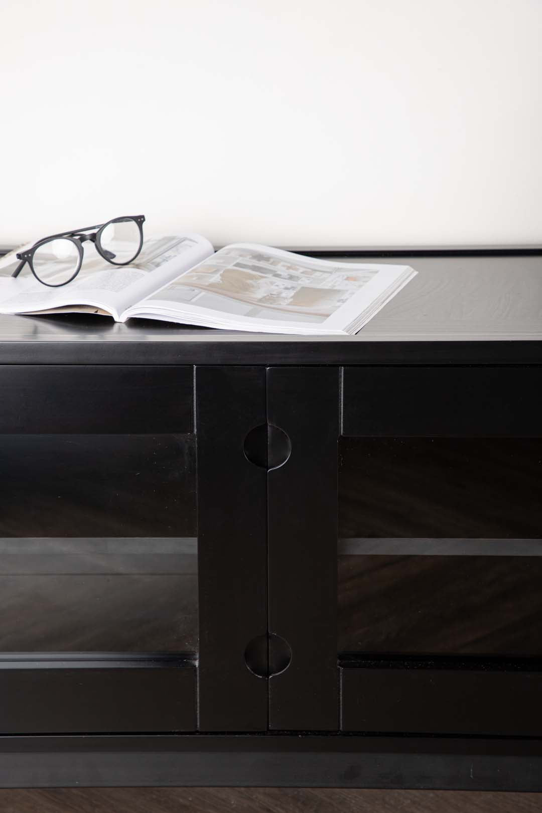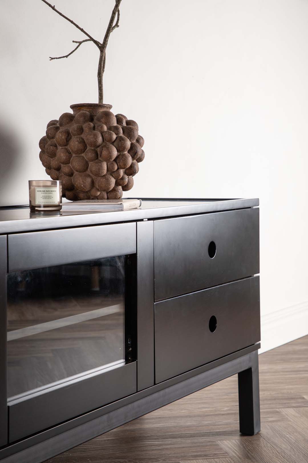 Alcoa dressoir 2 glazen deuren 2 laden zwart.