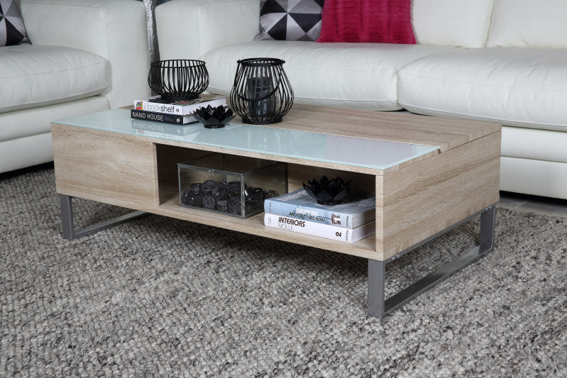 - 1 x Avanti - Salontafel - Wit Sonoma Eiken - Aluminiumkleur.